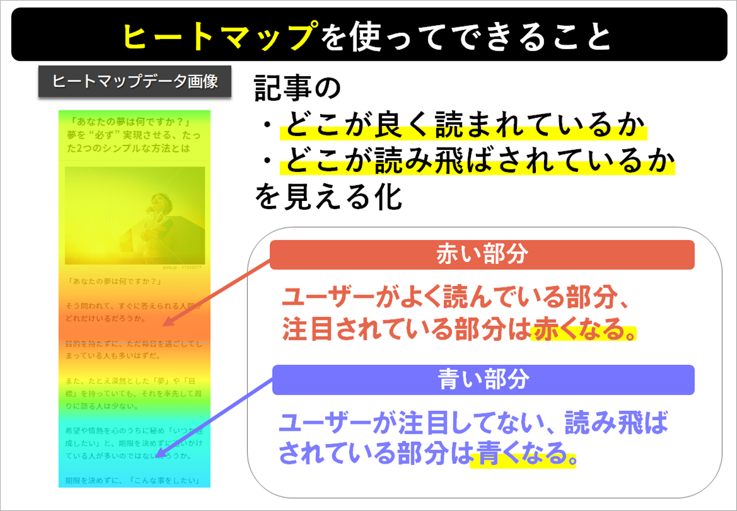 この記事LPの分析には「ヒートマップ」というツールを利用しています。