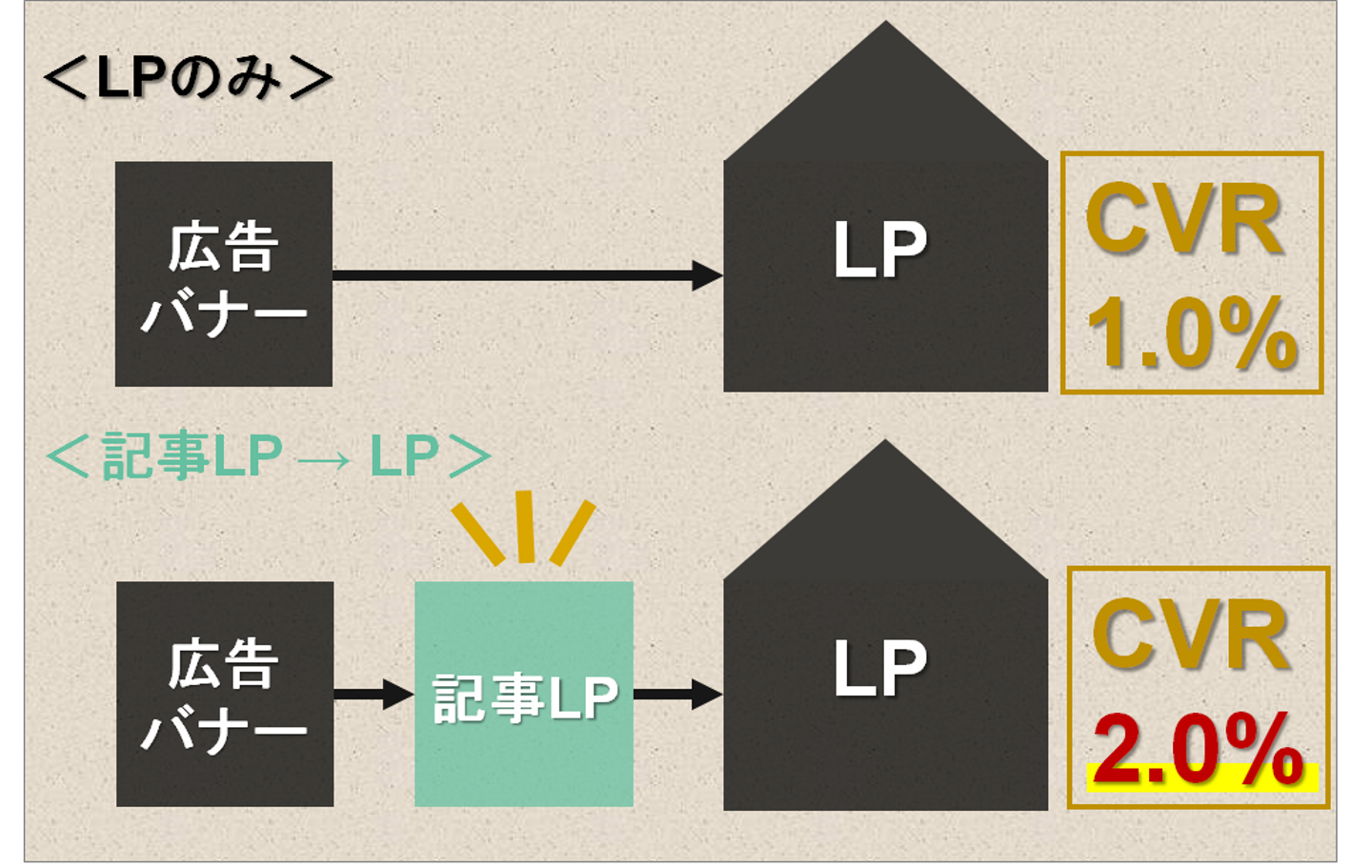 実際に、「バナー広告」などから直接「LP」に遷移させるよりも、