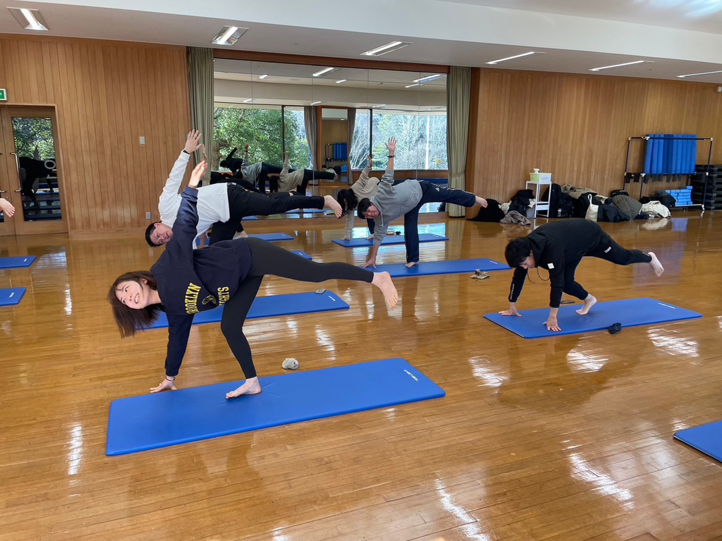 軽快にヨガをこなす女性陣に対し、男性陣からは「うぅぅ…」と悲鳴が。