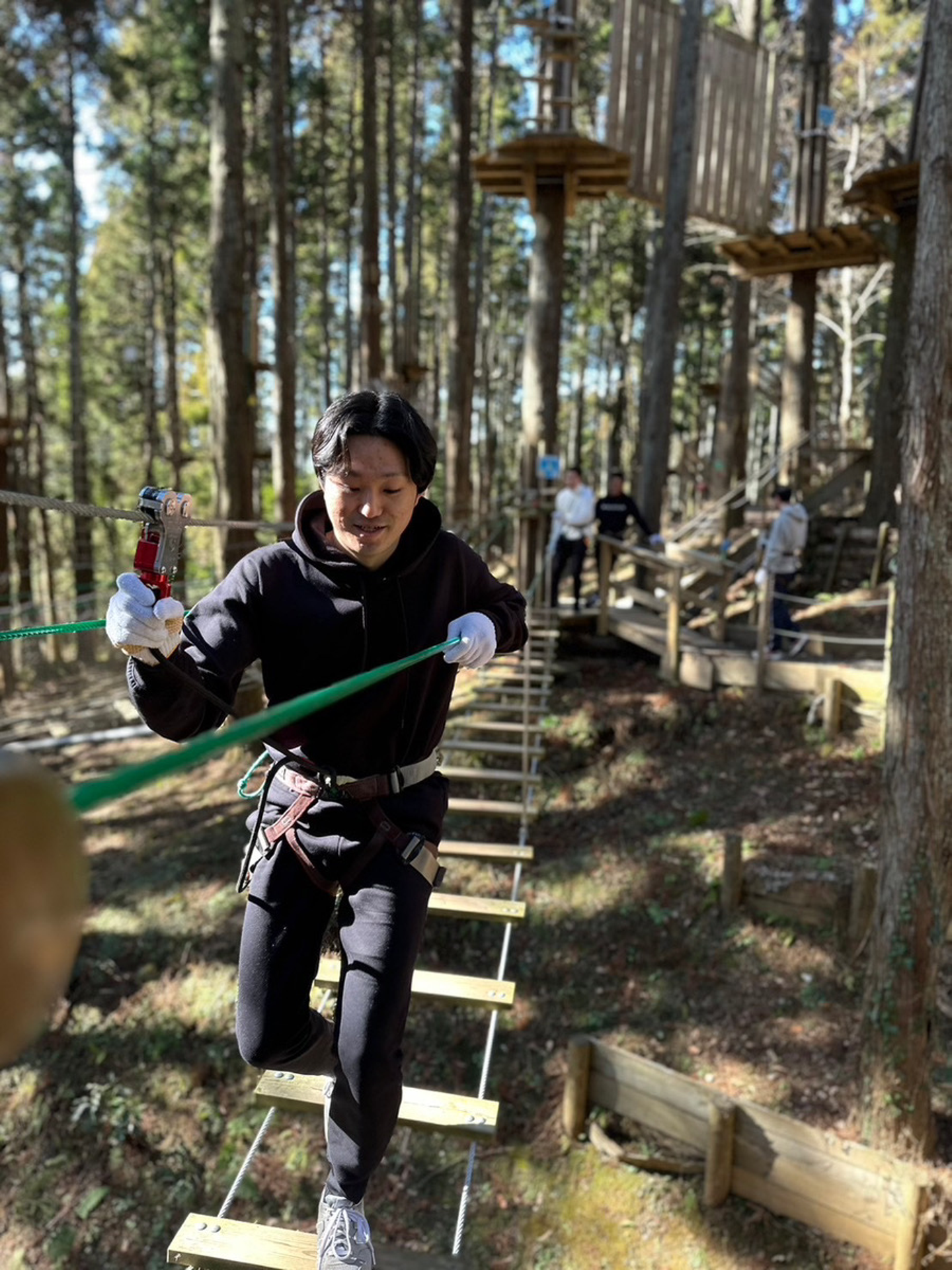 スタッフさんから安全講習を受け、ハーネスを装着。