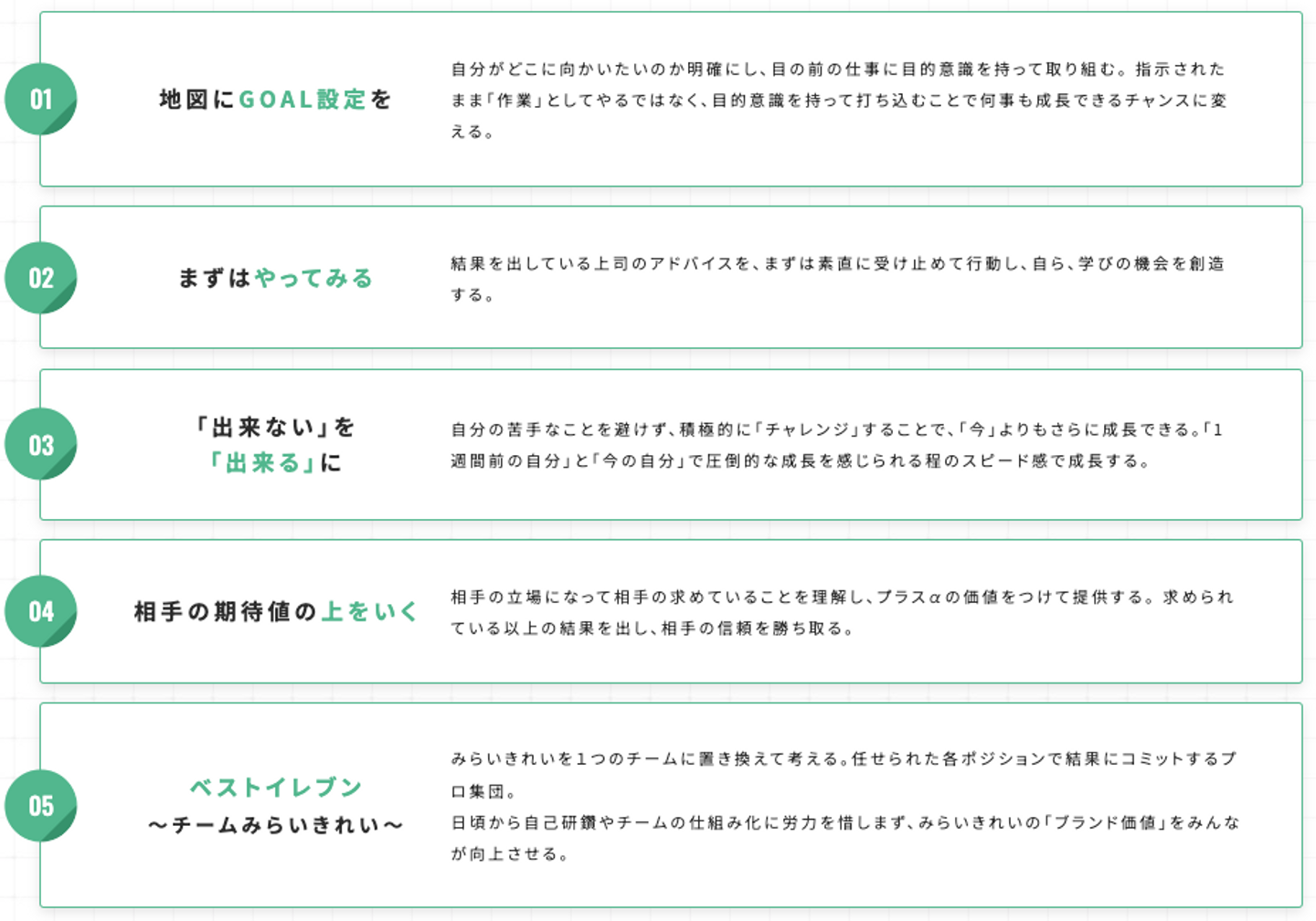その中から全員が納得する「ザ・みらいきれい」のバリューが完成しました!※近日公開!