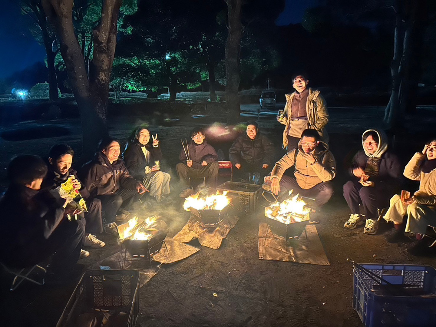 お腹がパンパンになり、次は焚き火を囲んで語り合いました!