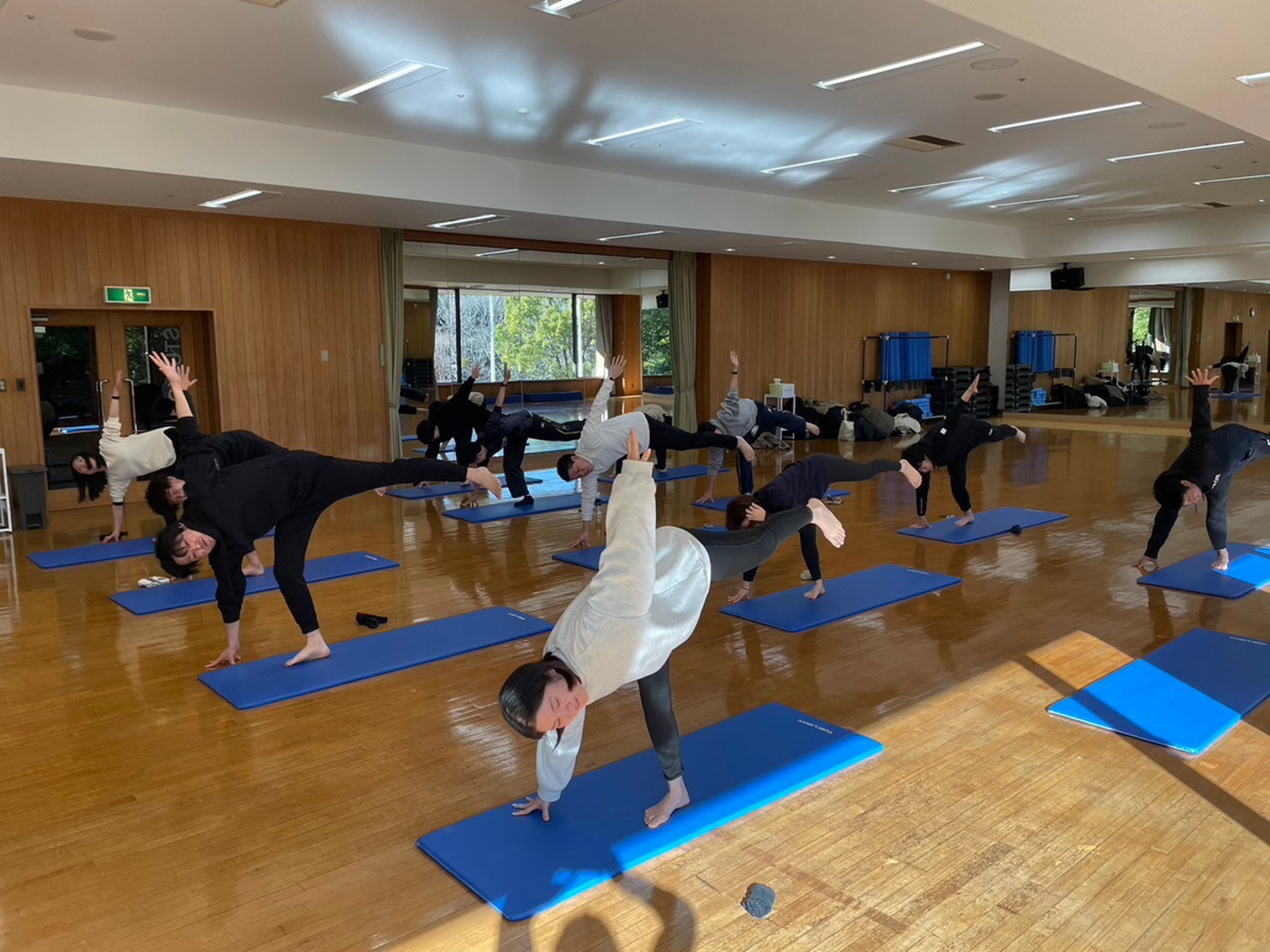まずは全員でヨガからスタート!
