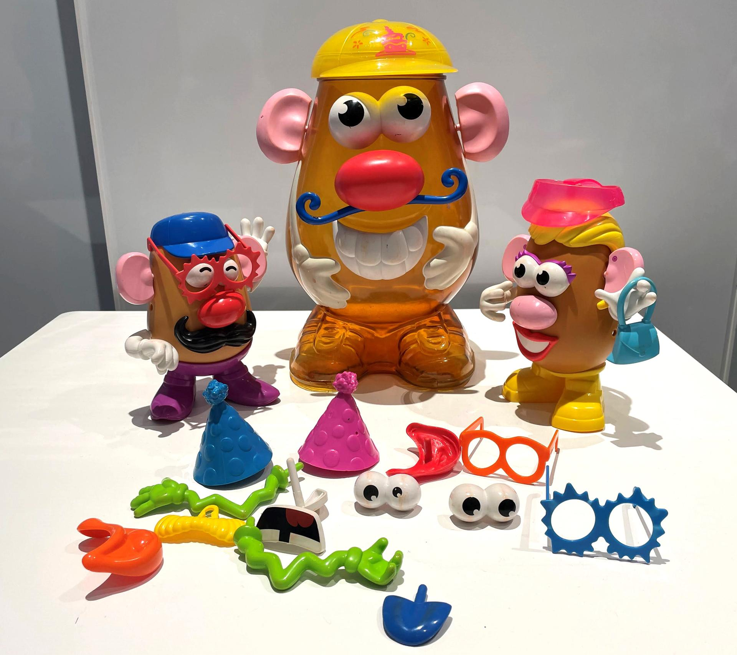 言ってみればアメリカ版「福笑い」。目や口、髪、耳、手、眼鏡と言ったパーツが何十個もあり、この組み合わせで顔を作って遊ぶ玩具です。アメリカの幼児がこれで遊ぶのですが、ディズニー好きの皆さんは映画「トイ・ストーリー」に出てきたのを覚えていますよね。