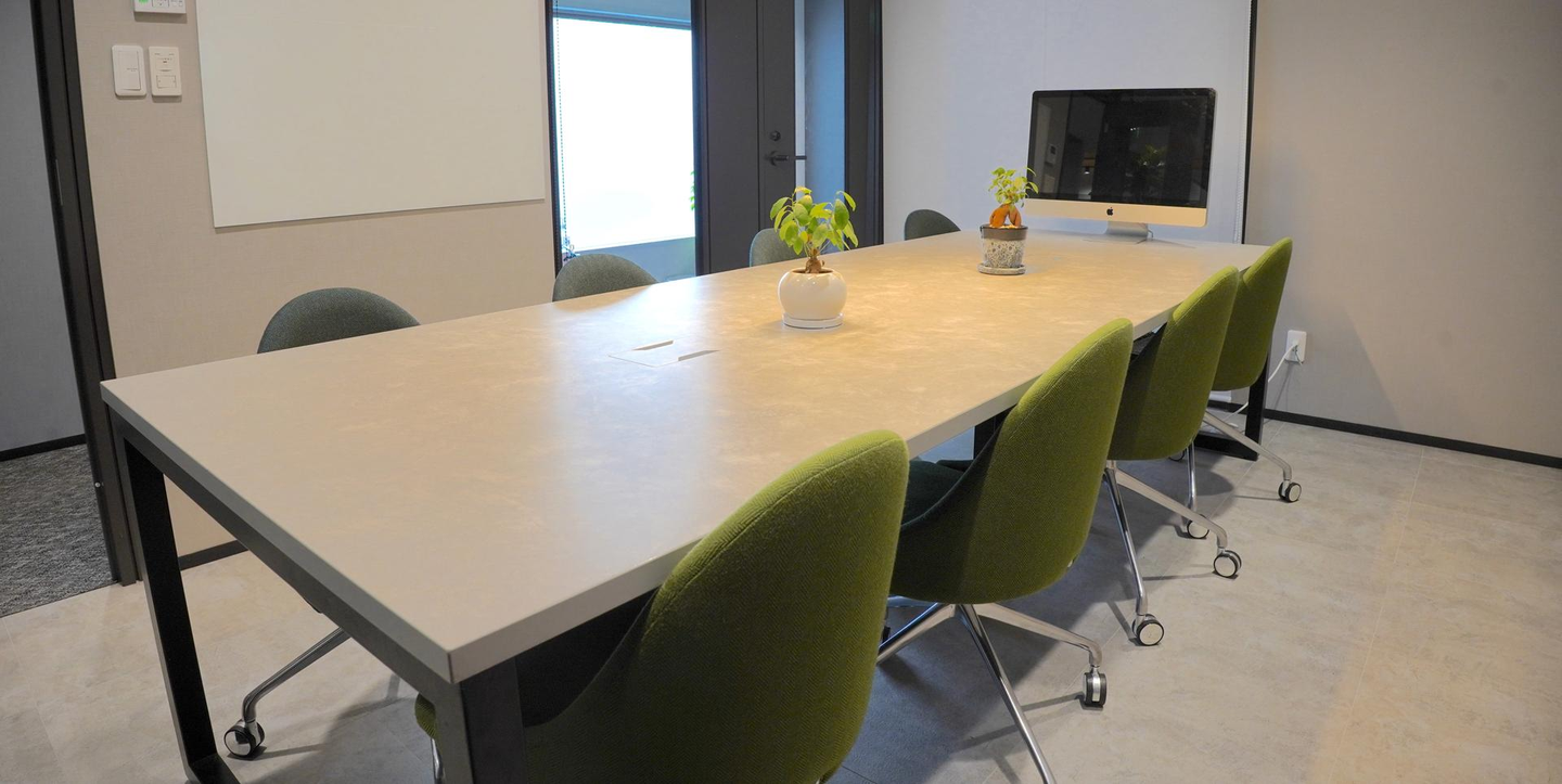 こちらは社内や社外の方とミーティングをする際に使うミーティングスペースになっています。ホワイトボードも設置しており、アイディア出しをする際に使うこともよくあります。