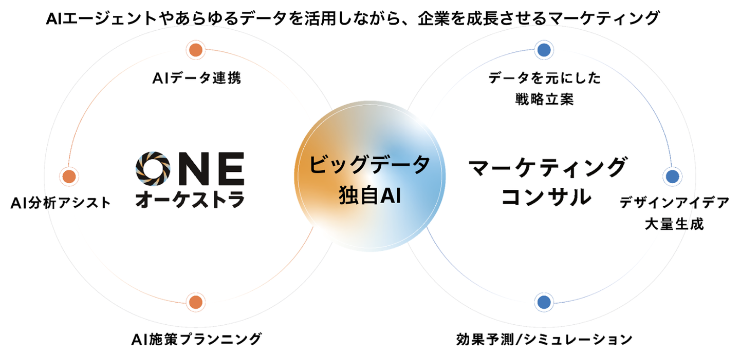 現在大きく進めているのは、マーケティングデータ統合・AI分析プラットフォームの「ONEオーケストラ」と、AI駆動のキャリア形成プラットフォームの「LEAPLACE」の2種類です。