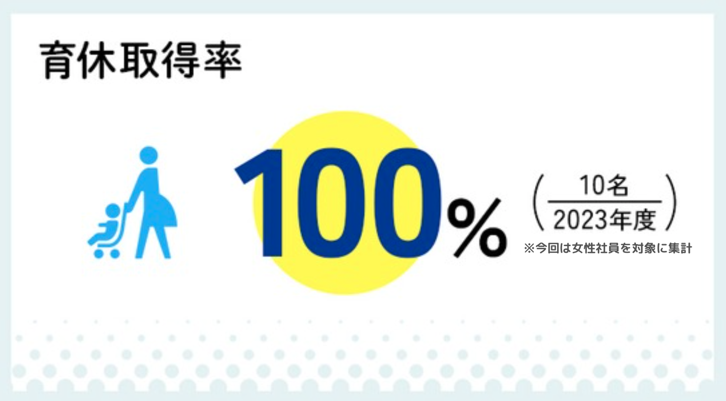 2023年度は育休取得率が100%!!心置きなく子育てできるよう会社がバックアップしています!