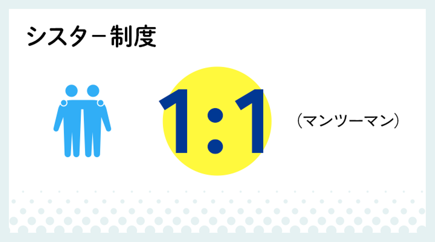 当社では、新人の方が現場ですぐに活躍できるように「シスター制度」を設けております。