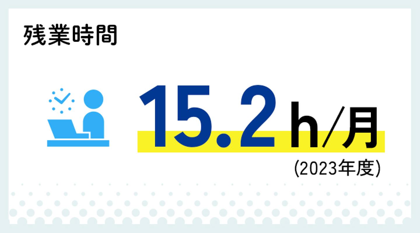 残業時間は15.2時間、1日平均1時間未満で帰宅ができます。