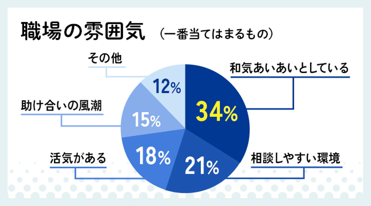 「和気あいあいとしている」「相談しやすい環境」など、人間関係の良さが目立つ