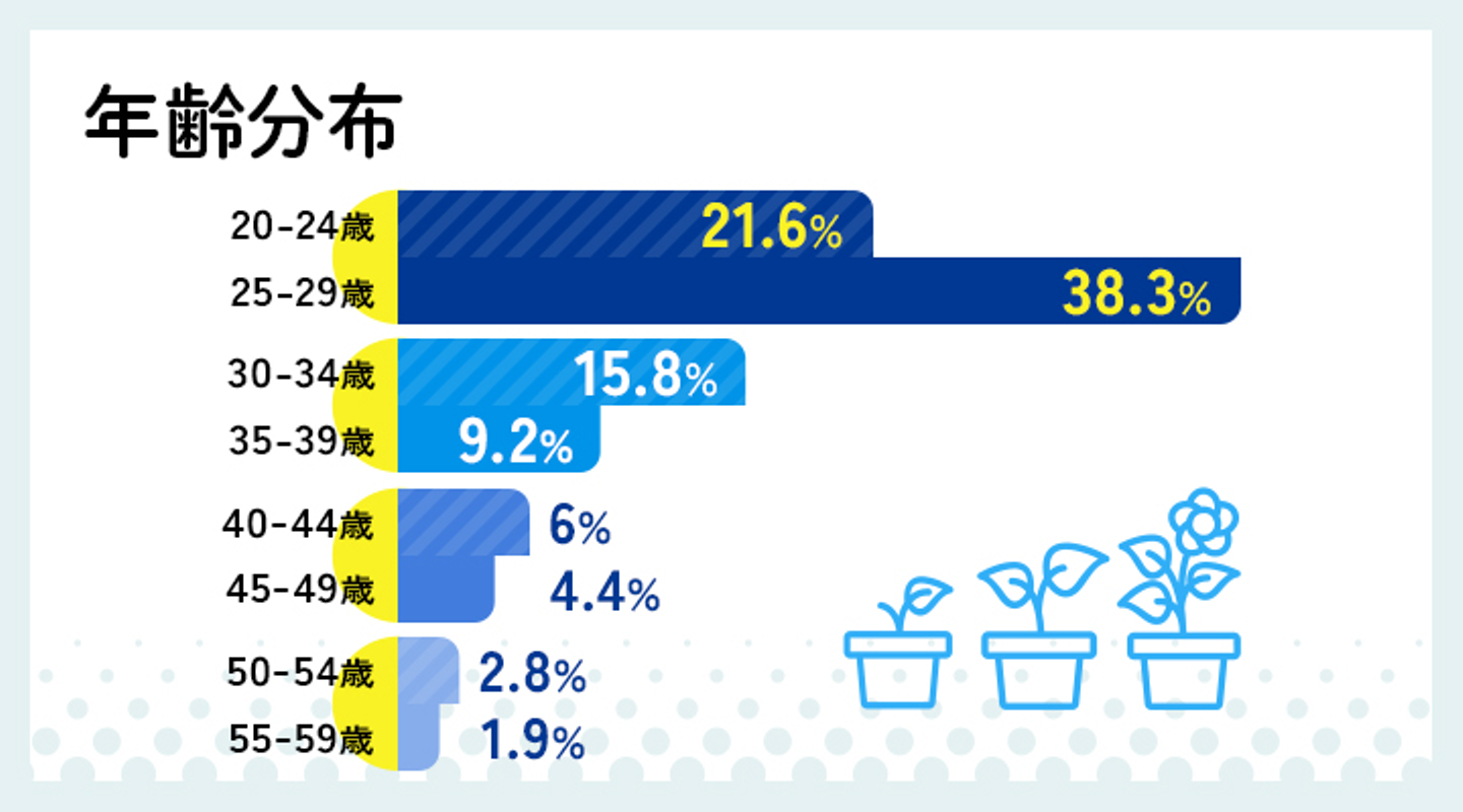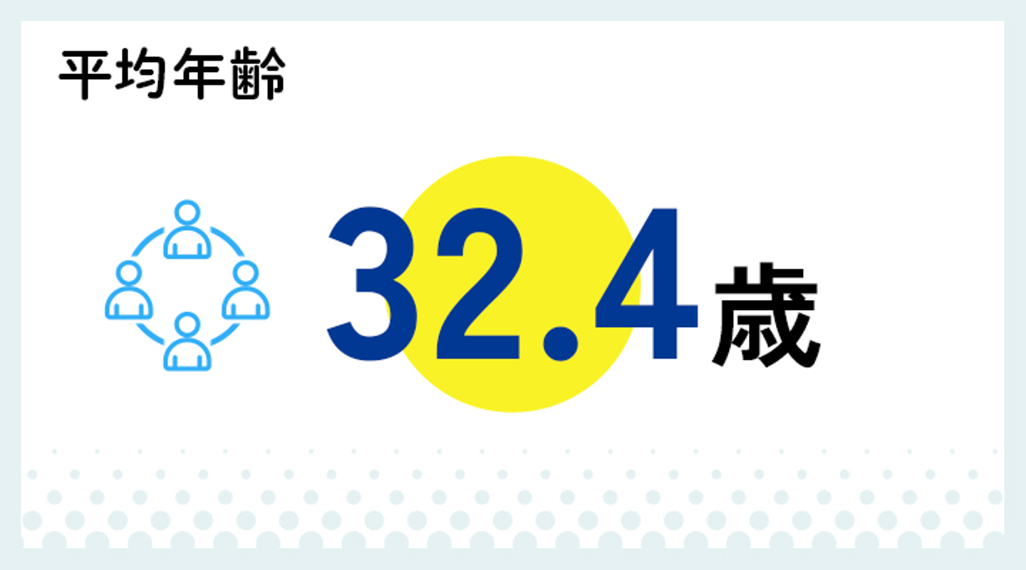 平均年齢は32.4歳と比較的若めです。フレッシュな社員が多いので