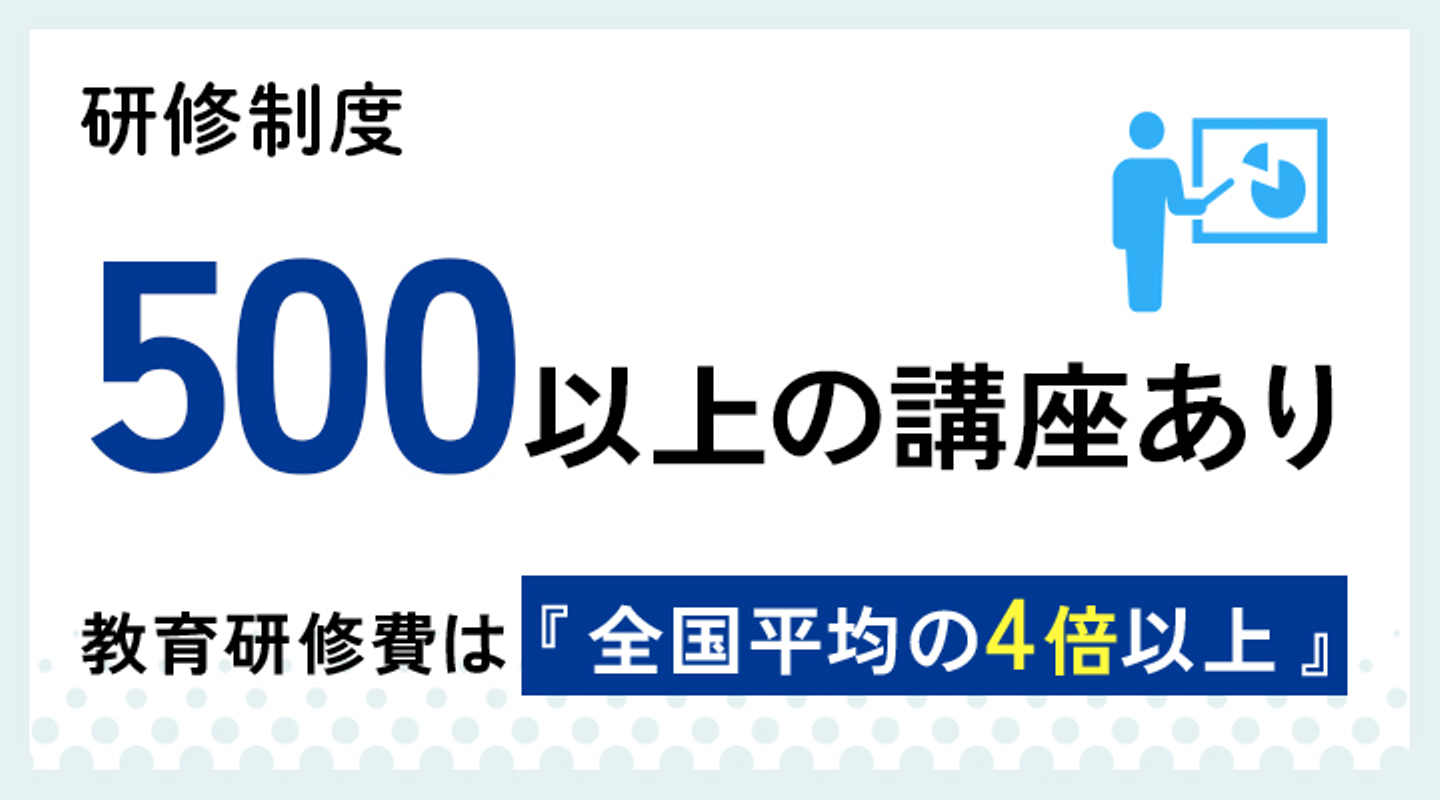 ご安心ください。アドバンスでは、様々な研修制度をご用意し、その種類なんと500種類以上!