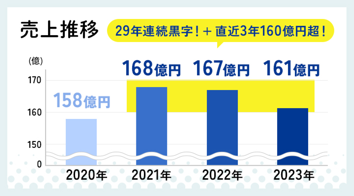 コロナ禍では最高収益を記録するなど、安定した経営ができております!