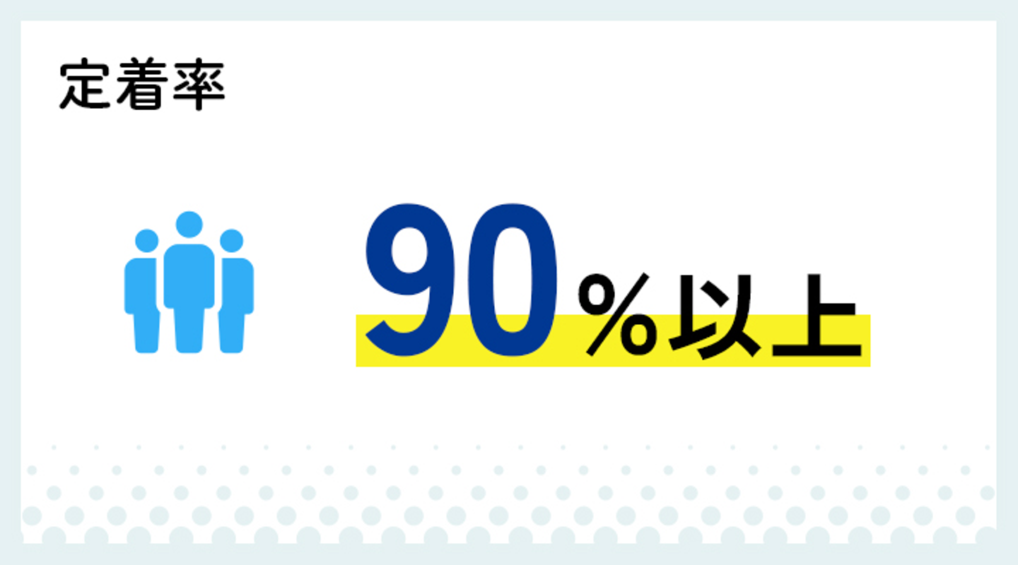 その結果、定着率は業界でも最高水準の90%以上をキープしております!