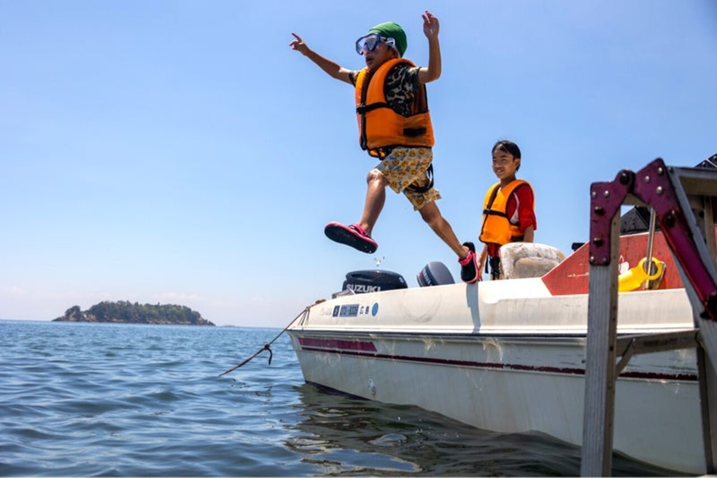 時にはこのモーターボートで、向かいにある仙酔島(せんすいじま)まで遠足に行ったり、釣りに出かけたりもします。さくらんぼの子どもたちは、とにかく海遊びが大好きです。