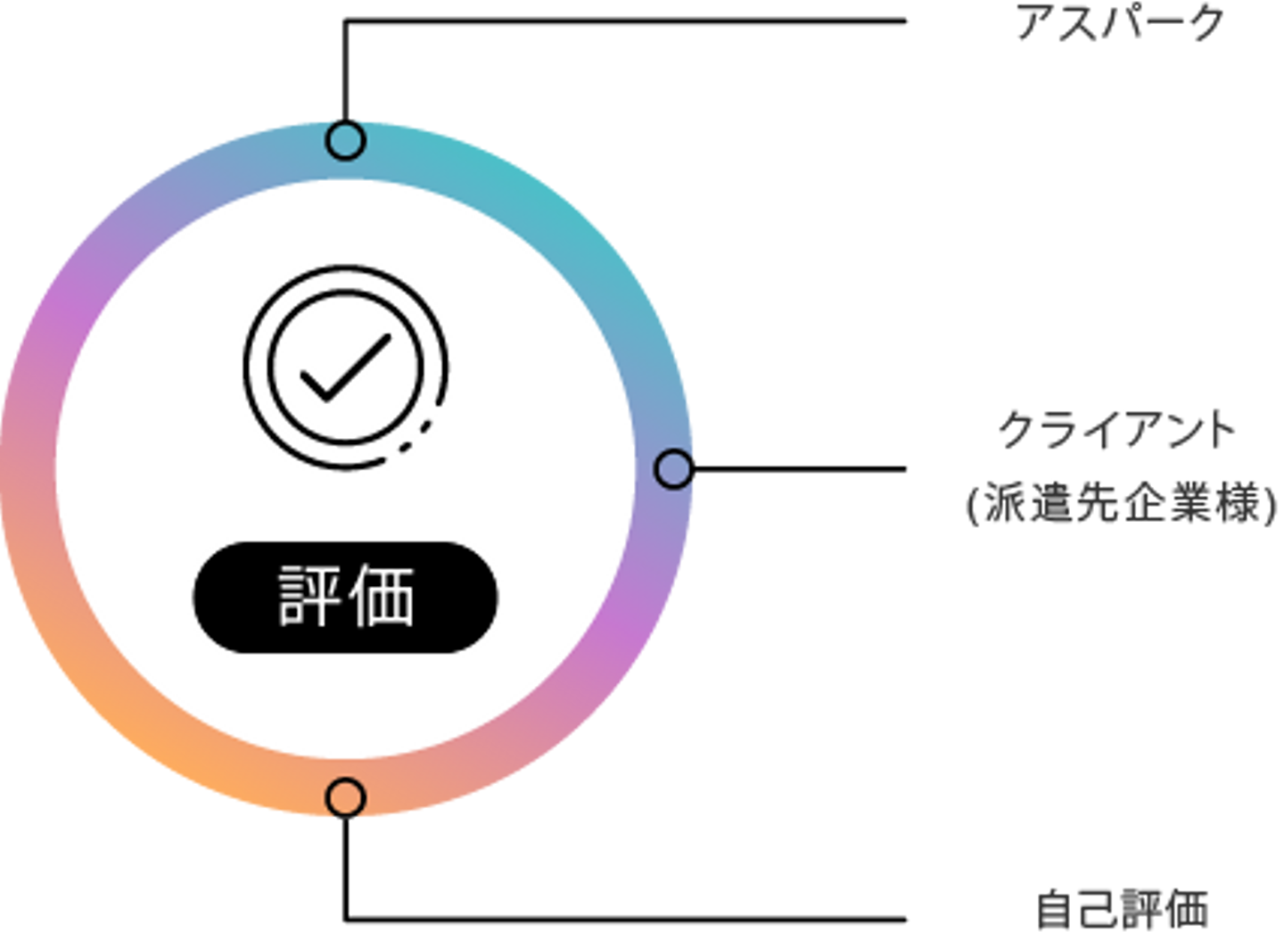評価制度のもう一つは『クライアント』『アスパーク』『自己評価』の三方向から評価を行うシステムです。