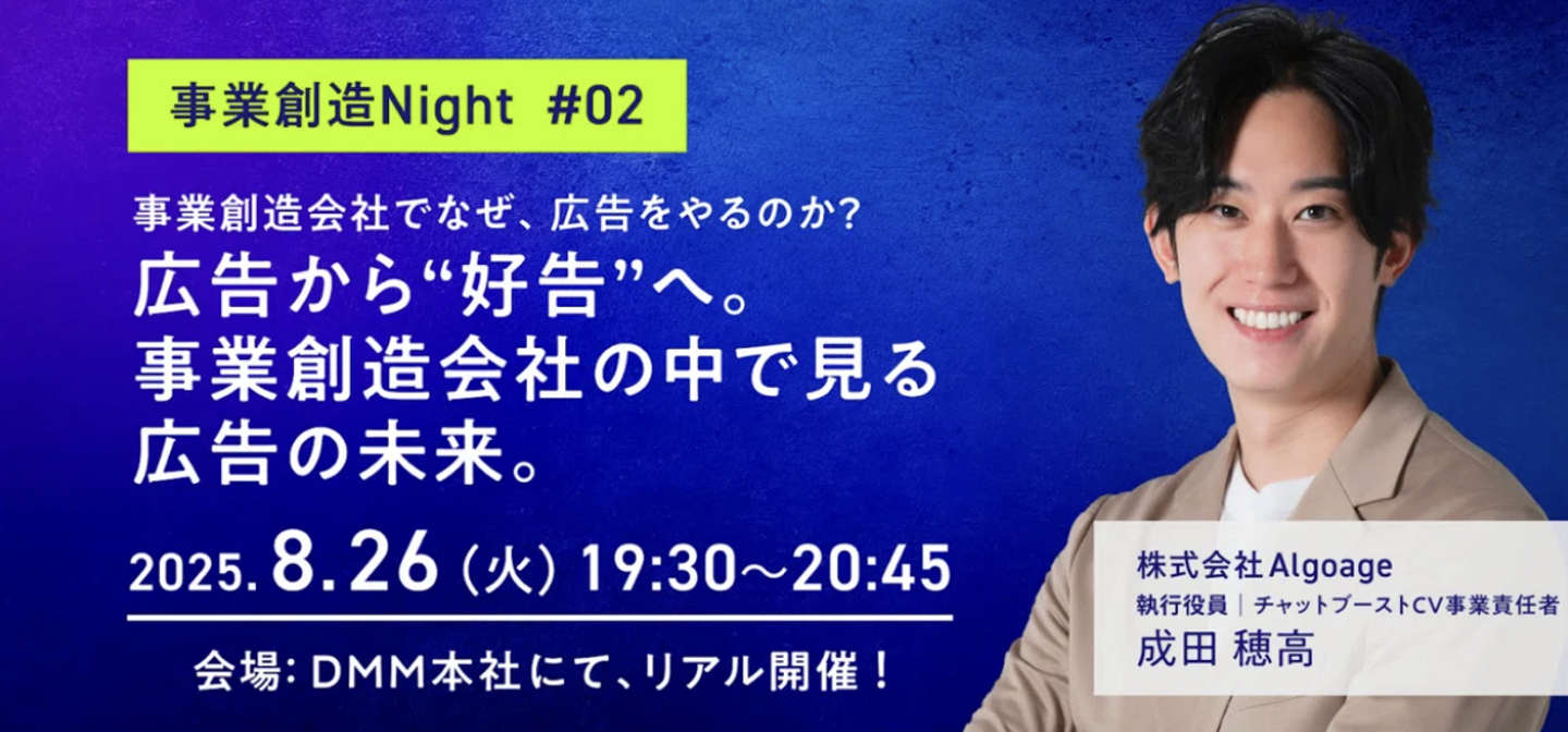 本記事では、その記念すべき第1回「事業創造Night #01│事業創造会社になったAlgoageのこれから、CEOが語るキャリアの分岐点」の様子をレポートします。]