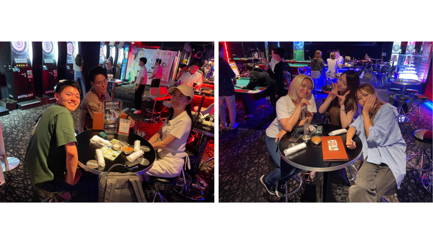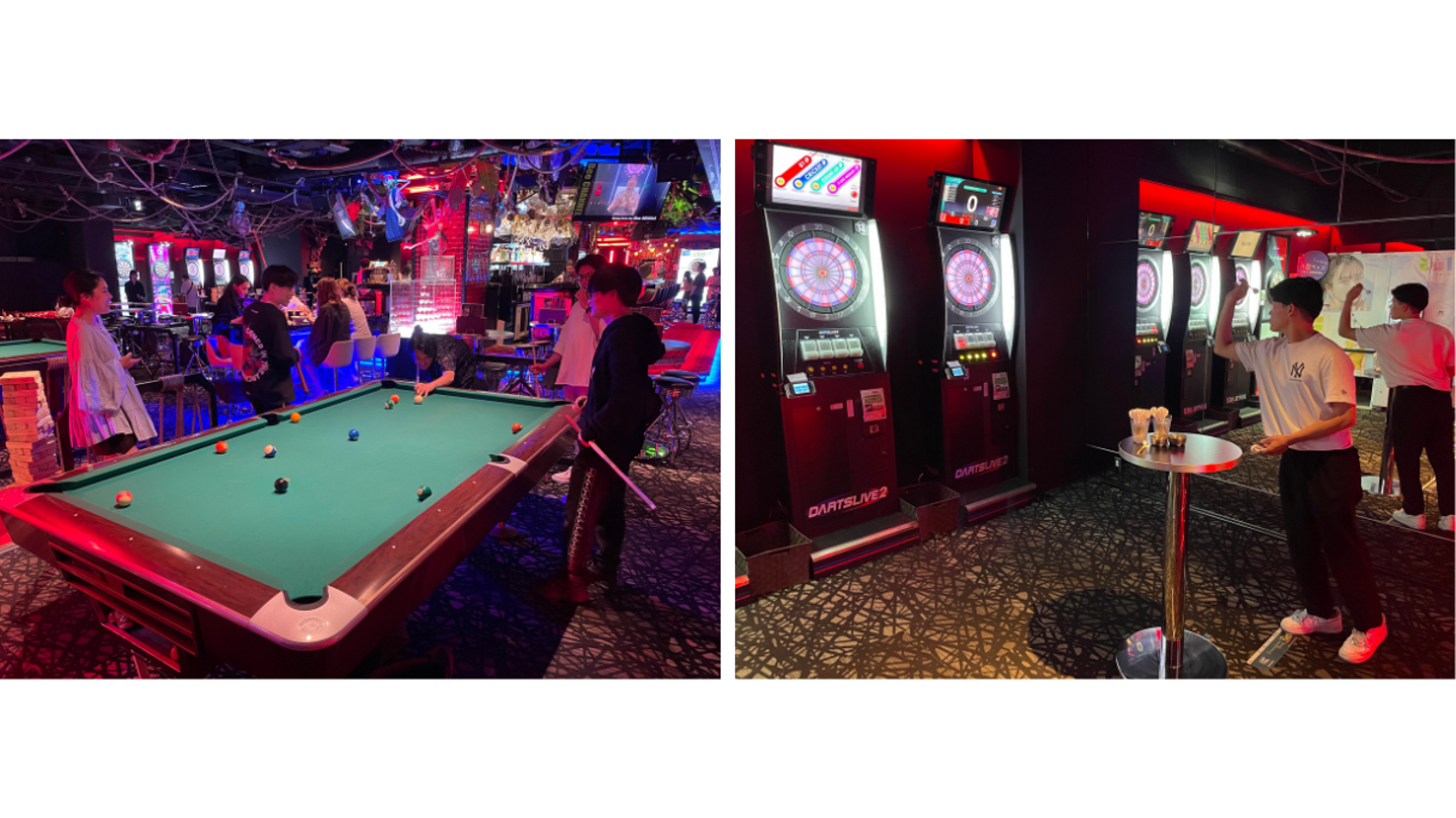 ビリヤードで白熱する渡辺さんや内村さん、ダーツが上手い一面を見せる大前さん。