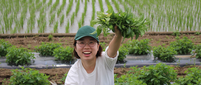 人気シーズナルサラダで利用している柿、蓮根を作られている農家さんでの農業体験を通じて、作り手の想いを聴き、お客様にどんなストーリーをお伝えできるかを考える機会を持っています。