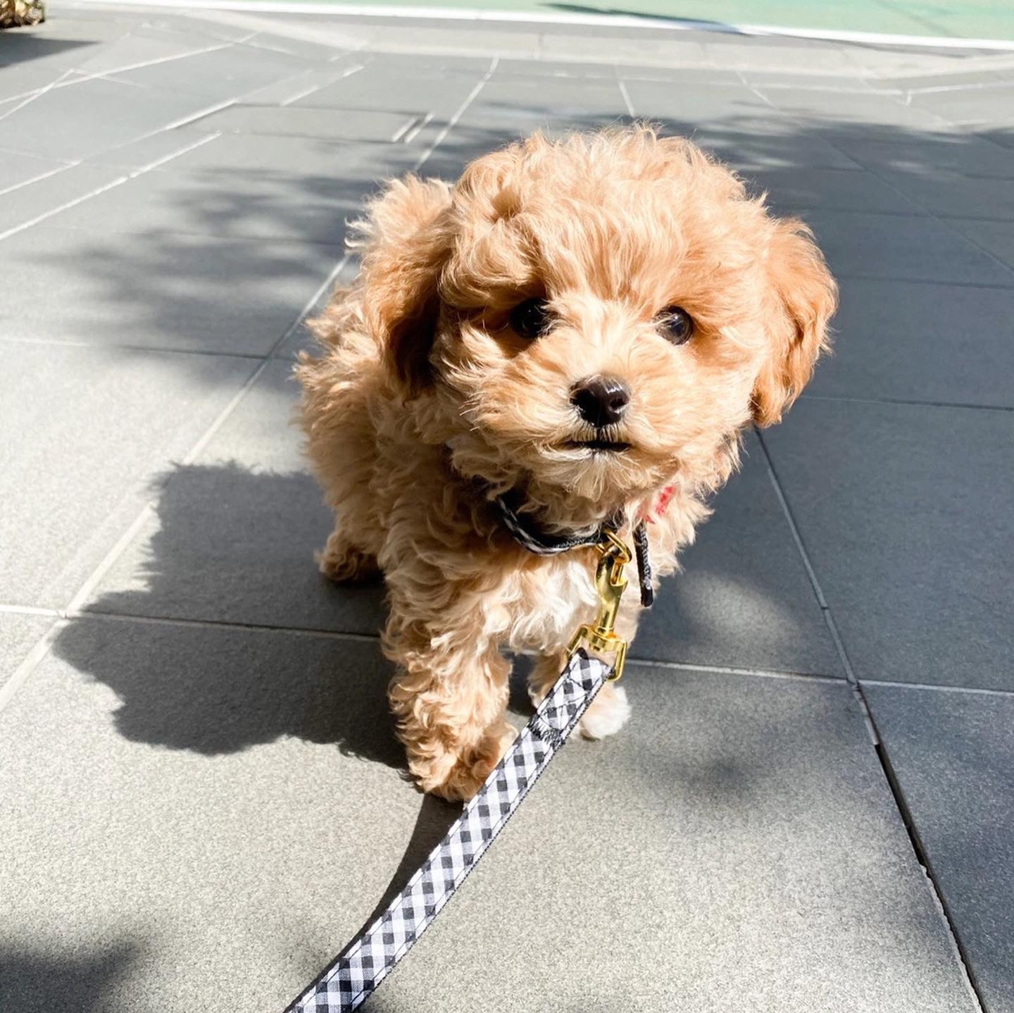 ※マルチーズとトイプードルのミックスです。名前は「ラテ」です。オスです。お散歩中です。
