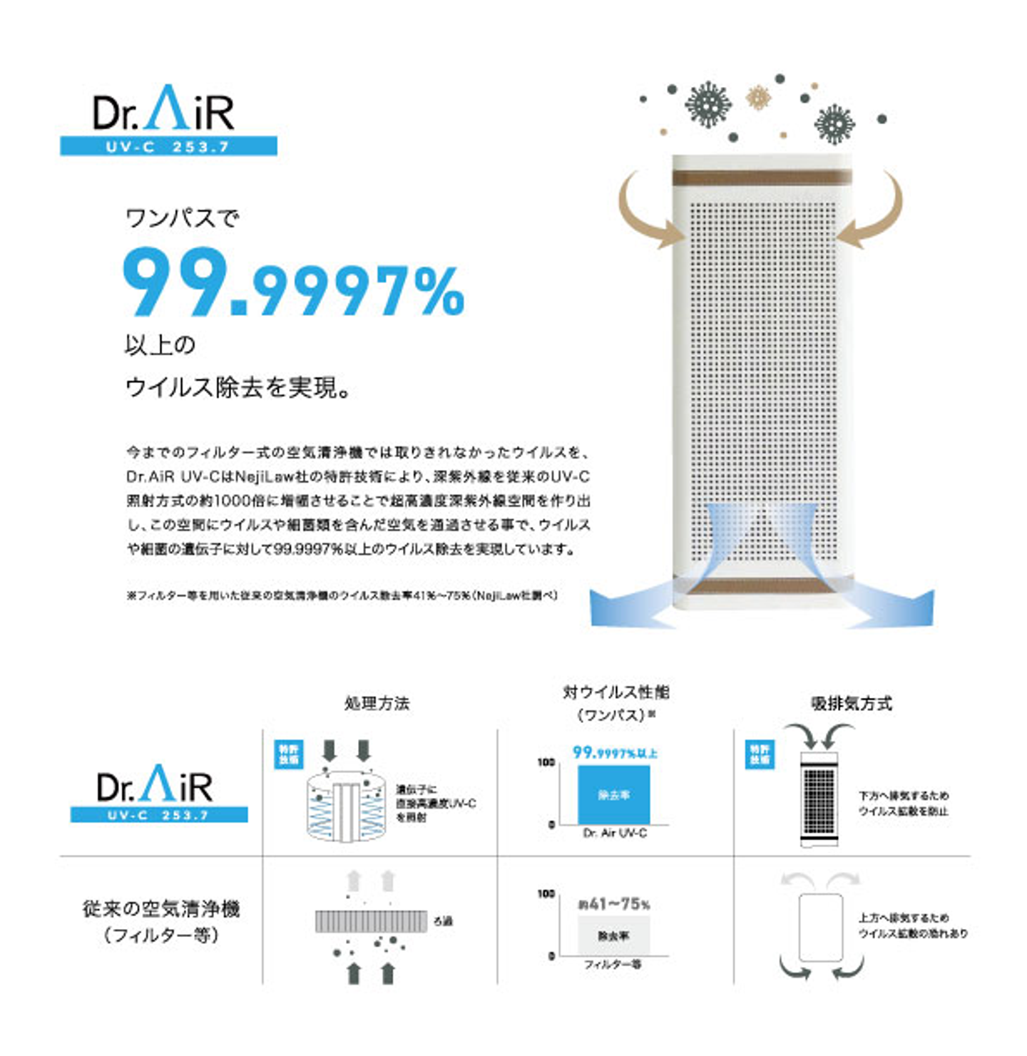 本体の下の部分に「ドクターエア」という、病院などで採用されている本格的な空気清浄機能を付けました。