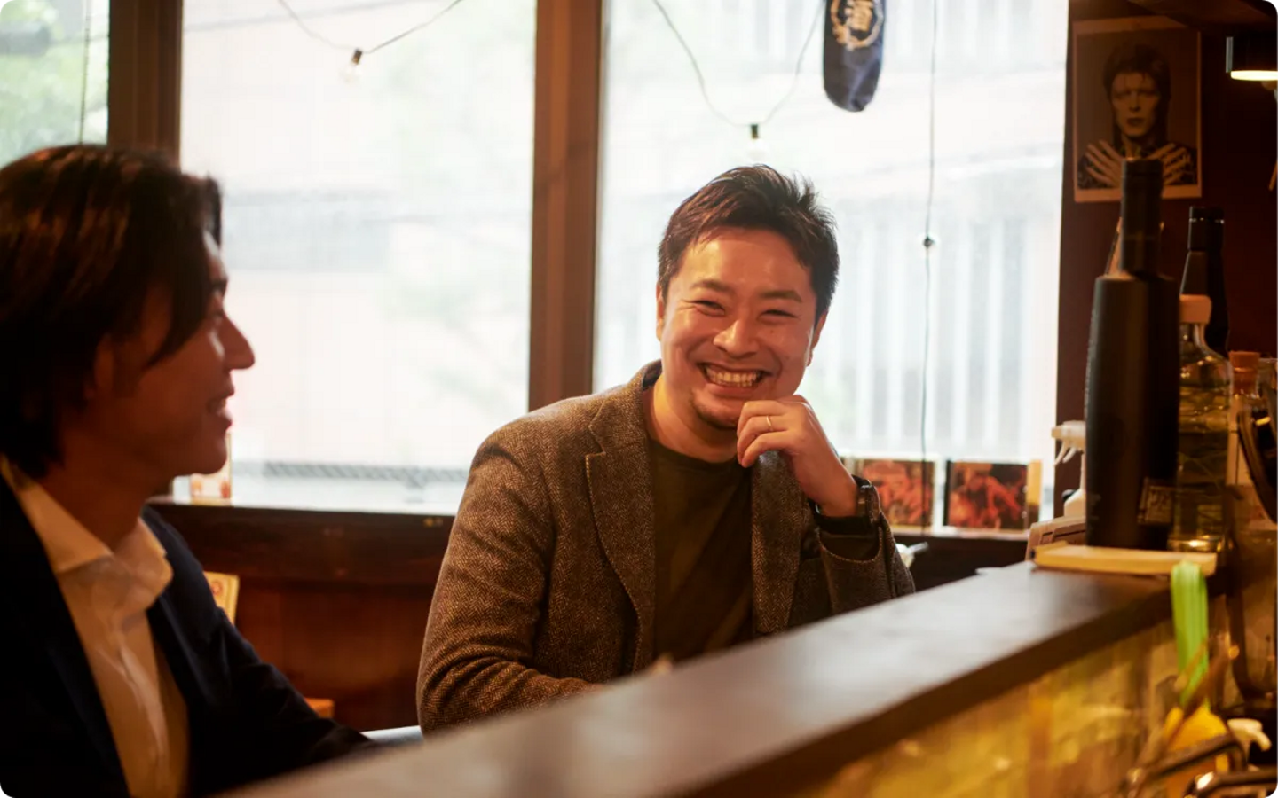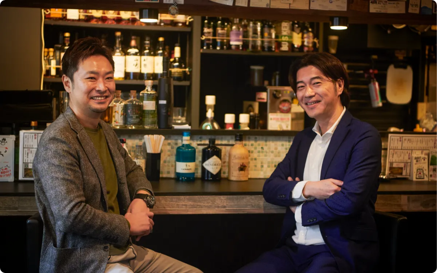 お二人とも本日はお時間いただきありがとうございます。今回は自社で運営しているBARムーでお話を伺いました。BARムーは、MOVER人材がリアルに集まって話せる場所があったら良いよね、という思いが実現した場所でもあるそうです。そんなBARムーを舞台に、経営陣のお二人にMOVER&COMPANYが大切にしている価値観や、社内でよく使われる「MOVER人材」という言葉の本当の意味、そして新卒で入社したメンバーが、どのようなキャリアを描けるのかについて、できるだけリアルに語っていただきます。
