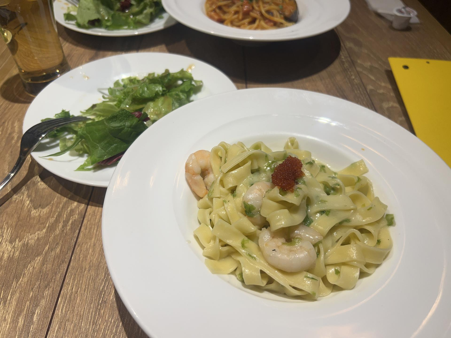 フィットチーネパスタ大好き♡ランチタイムは6種類のパスタと6種類のピザから選べて、すべてにサラダとドリンクバー付き!店内も広くて、ゆっくり過ごしたいときはよく行くそうです♪