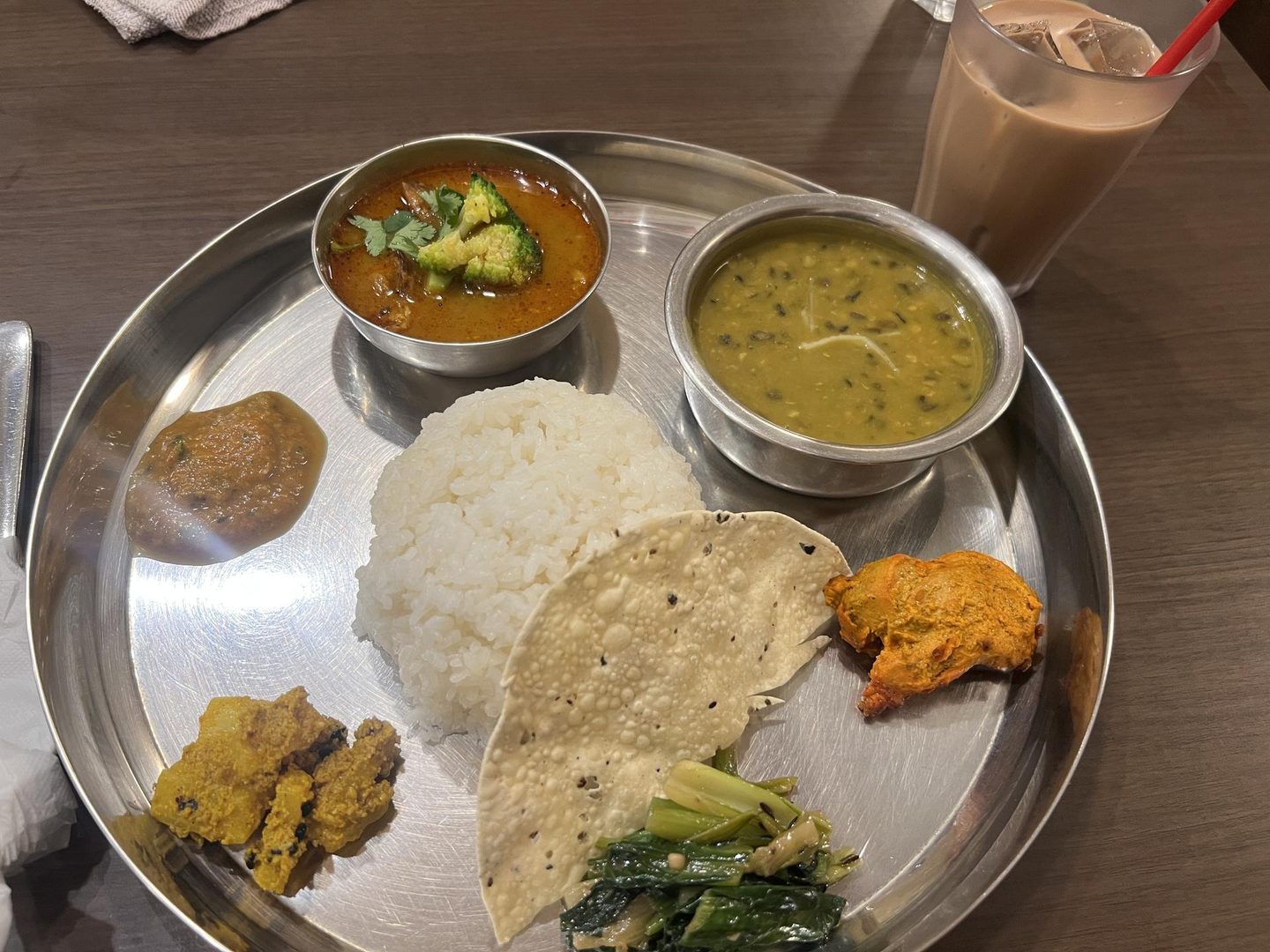 飯塚くんとかぶった(笑)けど、オムライスではなくここのダルバートがすごく好きです。ダルバート=ネパールの国民食である定食で、豆のスープとご飯、カレー、漬物、副菜などをワンプレートになったもの。ワンプレートで食べられる点とスパイスが効いていて健康志向の方にもおすすめです。