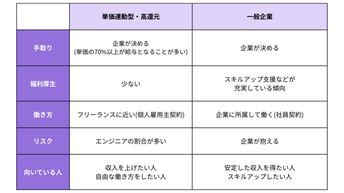 しかし、単価連動型や高還元という仕組みが必ずしもエンジニアのためにならないこともあると考えています。