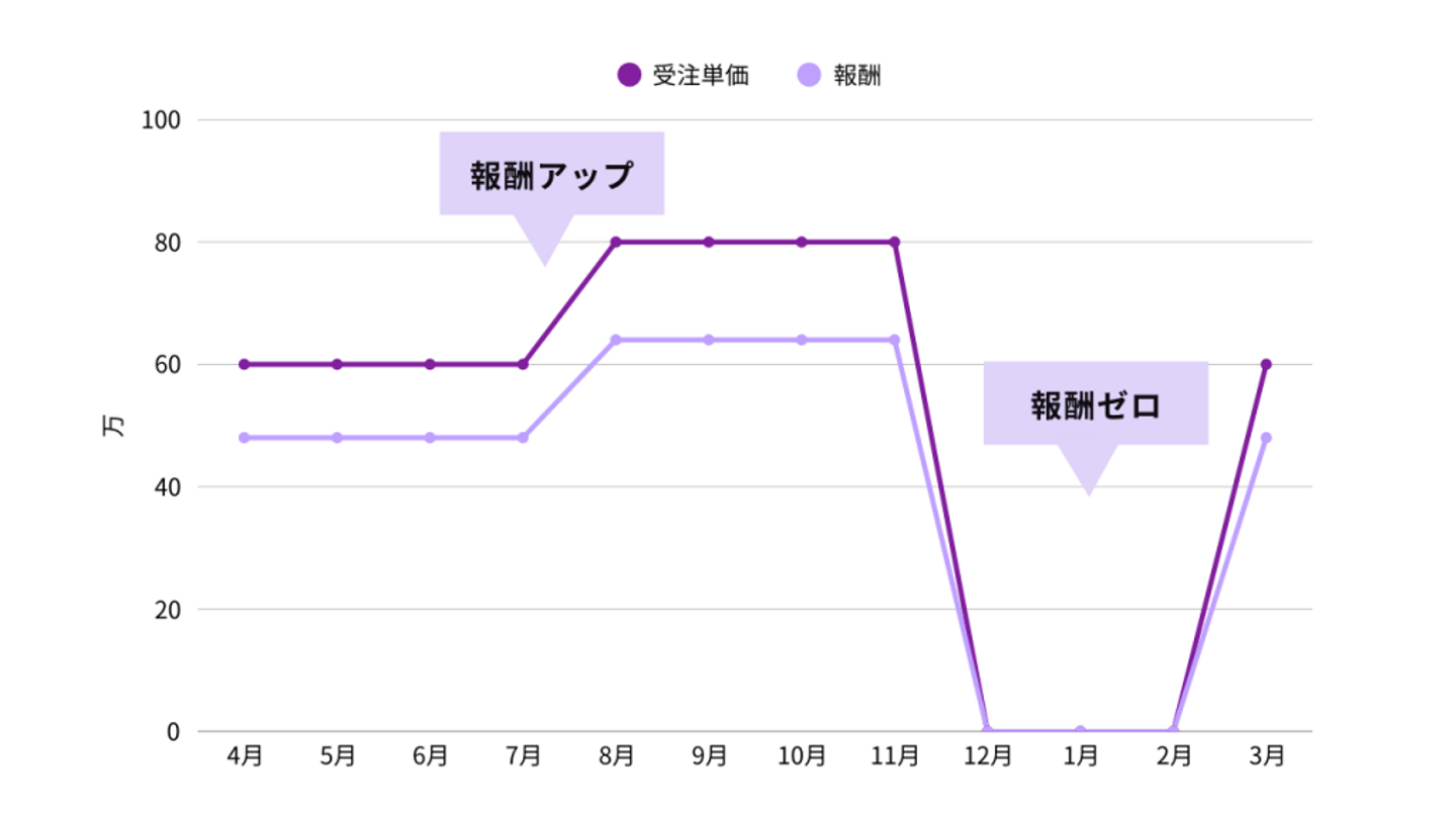 例:受注単価が100万円 → 還元率80%なら、報酬は80万円