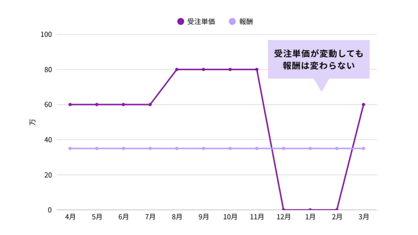 単価連動型は、受注単価に応じて、エンジニアに報酬を支払う仕組みです。