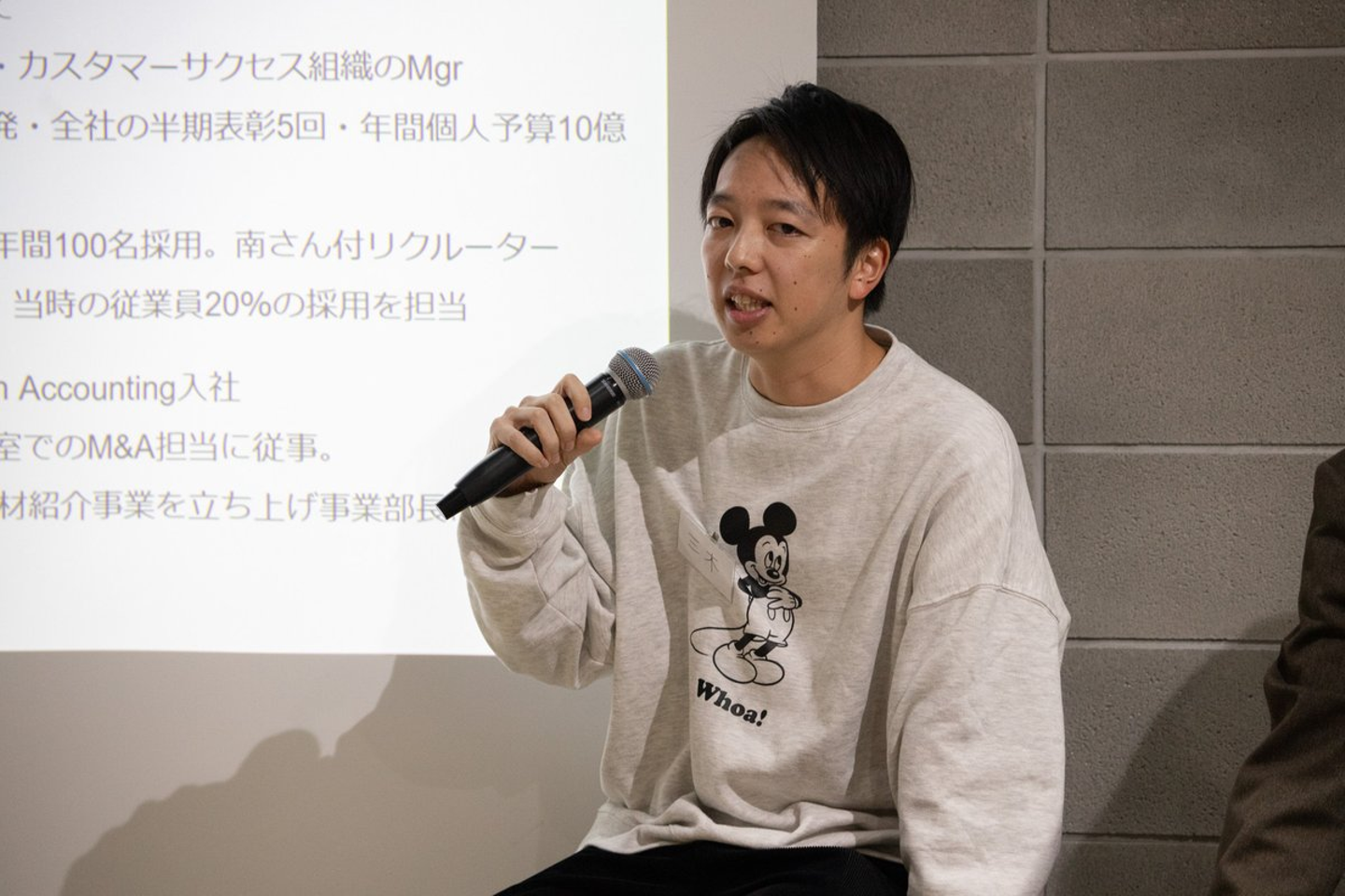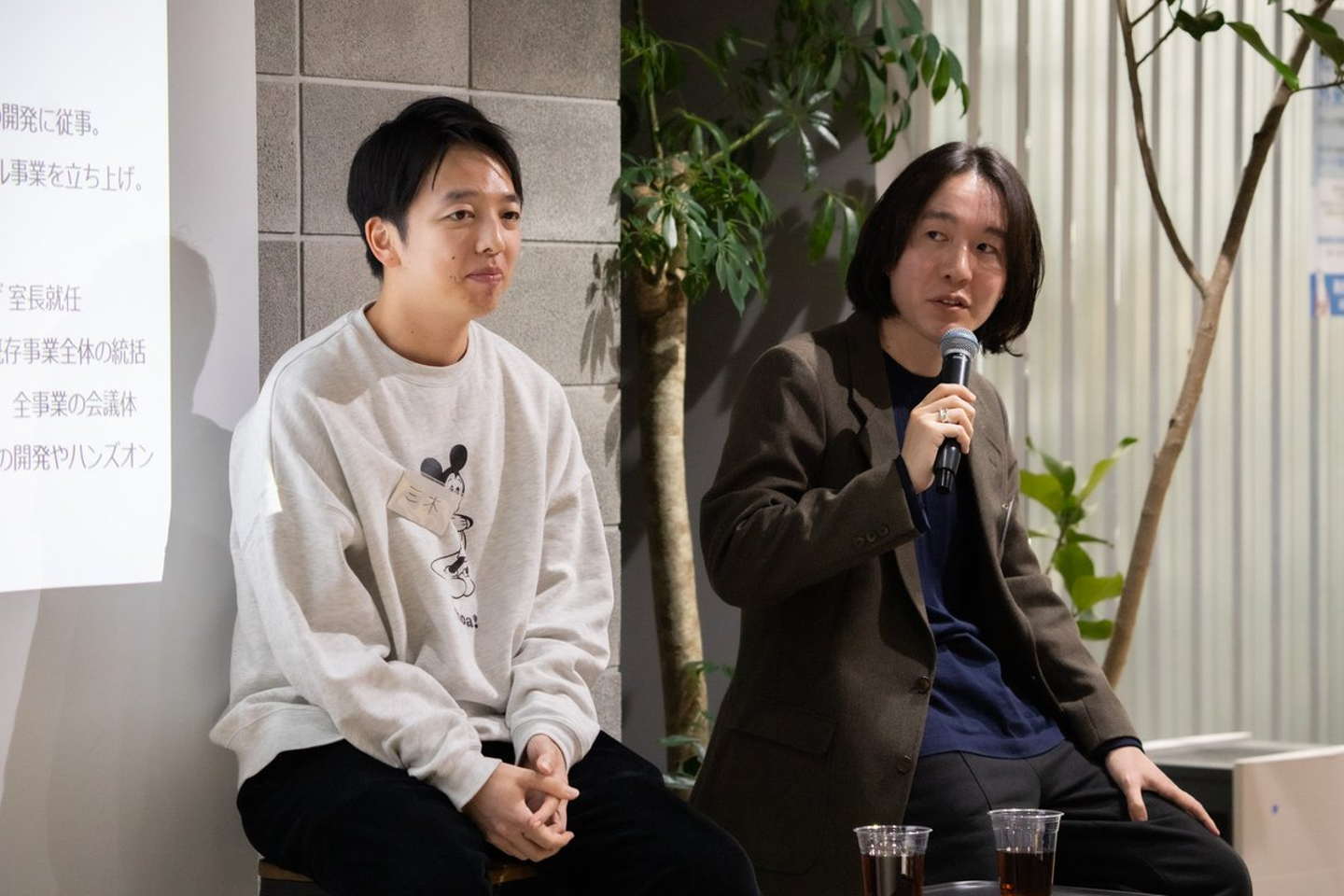後半は事業部長の1人である三木 弦太さんを交えてパネルトークタイムに。司会者からの質問にふたりが答えていきました。ここでは、質問をいくつかピックアップしてその模様をお届けします。