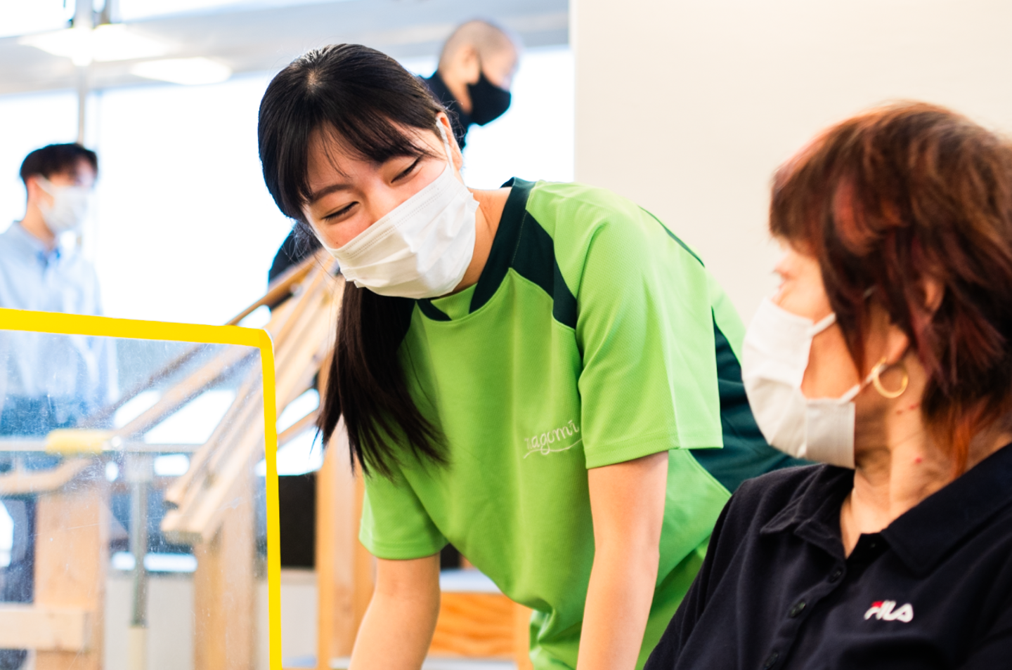 「元気」は、あるに越したことはないと思います(笑)!ご利用者さんも、いつもスタッフさんの様子を感じ取っていらっしゃると思うので。私はもともと介護職は未経験でしたが、飲食での接客業の経験があったので、ご利用者さんに自分から積極的に声をかける、というところに対しては経験がいきているかなと思います。さらに、常にスタジオ全体を俯瞰的に見ながら、臨機応変に対応できる力があると活躍できると思います。場を”仕切る力”というか。自分ひとりではすべてを対応しきれないので、他のスタッフの方にもうまくサポートを依頼しながらてきぱき指示出しできると、スムーズにプログラムを進行できるインストラクターになれると思います。これは私自身も伸ばしたいと思う部分でもあるので、今後も頑張っていきたいと思います!