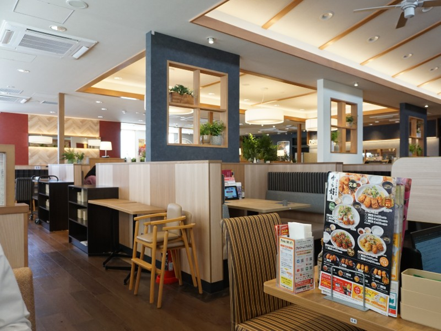 お客様の利便性向上と、従業員が働きやすい環境づくりを目指す画期的な店舗です。さらに、最新のデジタル技術(DX)を積極的に活用して、サステナブルな店舗を実現。お店での食事や時間を過ごす際に、環境に配慮した心地よい空間を提供できる店舗です。
