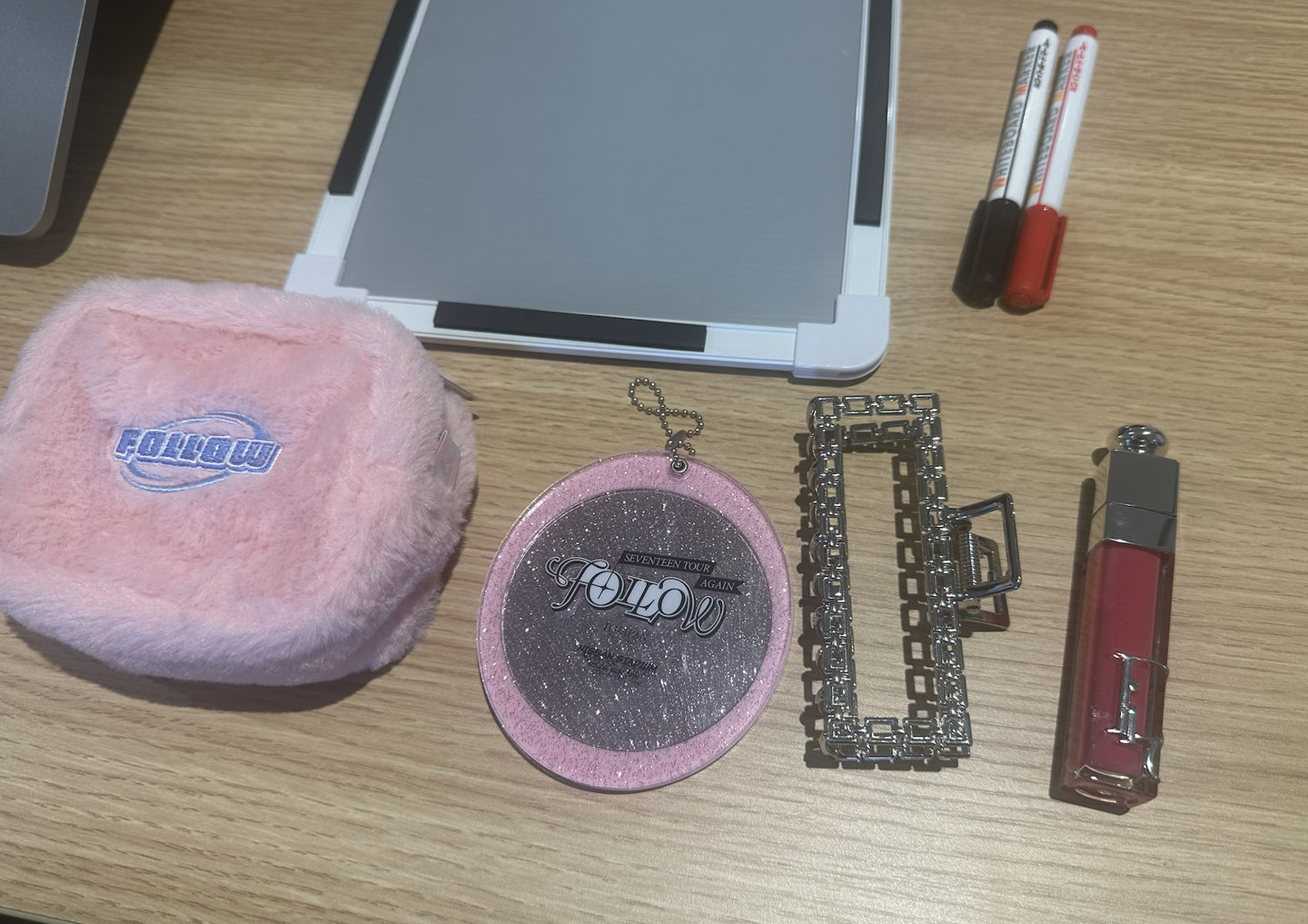 「大好きなSEVENTEENのグッズをデスクに置いて、テンションを上げています。
