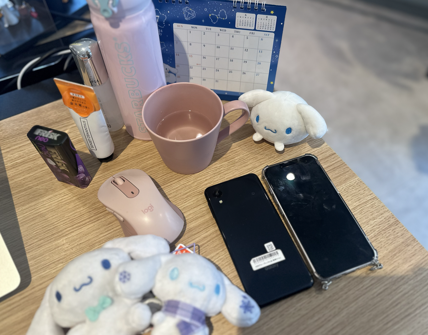 (大好きなシナモロールを側において、モチベーションを上げています。)