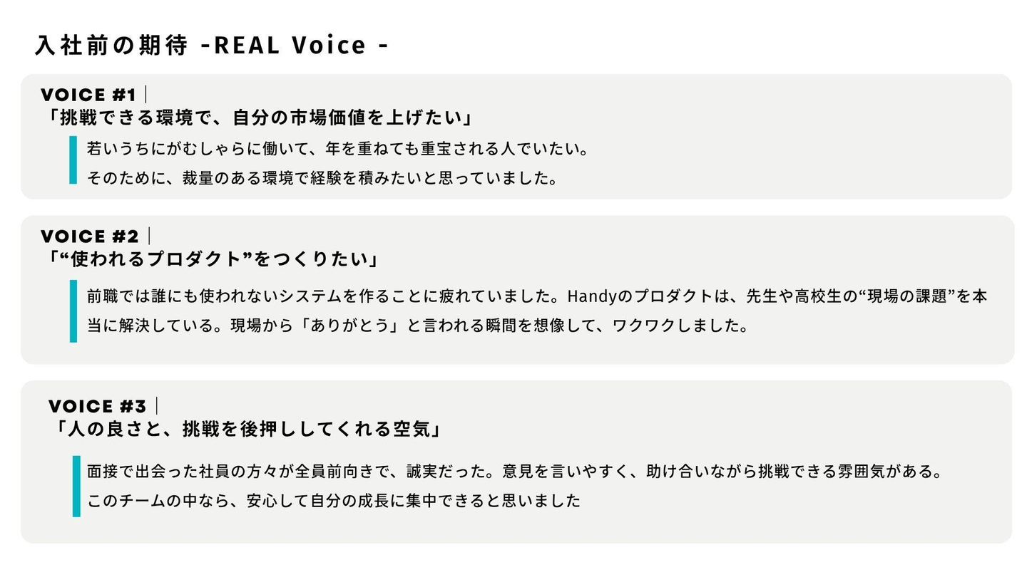 ひとつは「思っていた以上に良かったこと」。もうひとつは「想像以上にスピード感があること」。どちらも、急成長中のハンディらしい“リアル”です。