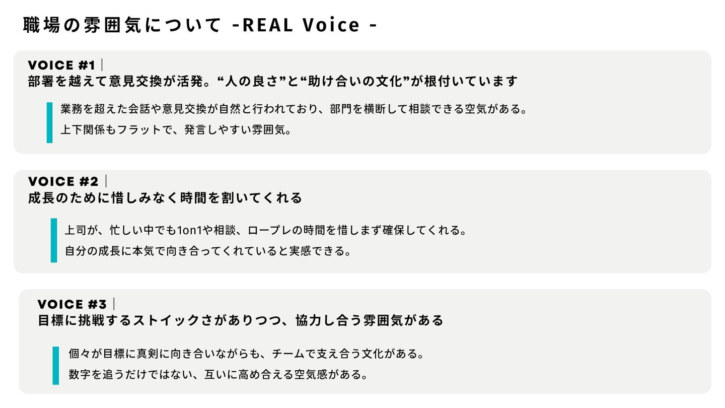 「事業」「人」「成長環境」──この3つを魅力に挙げる声が特に多く集まりました。