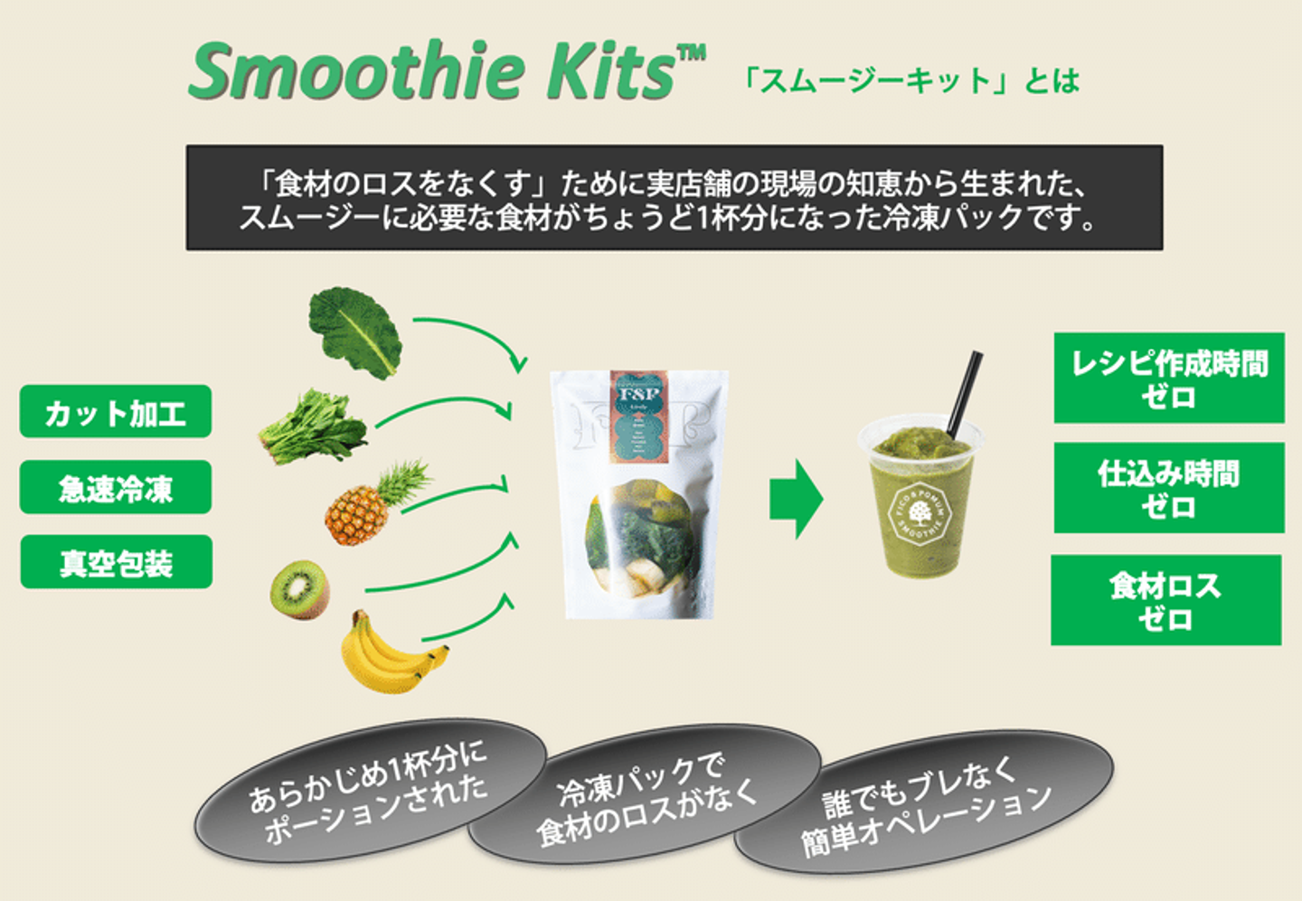 このように、F&Pの本格スムージーは「スムージーキット」が中核となって、