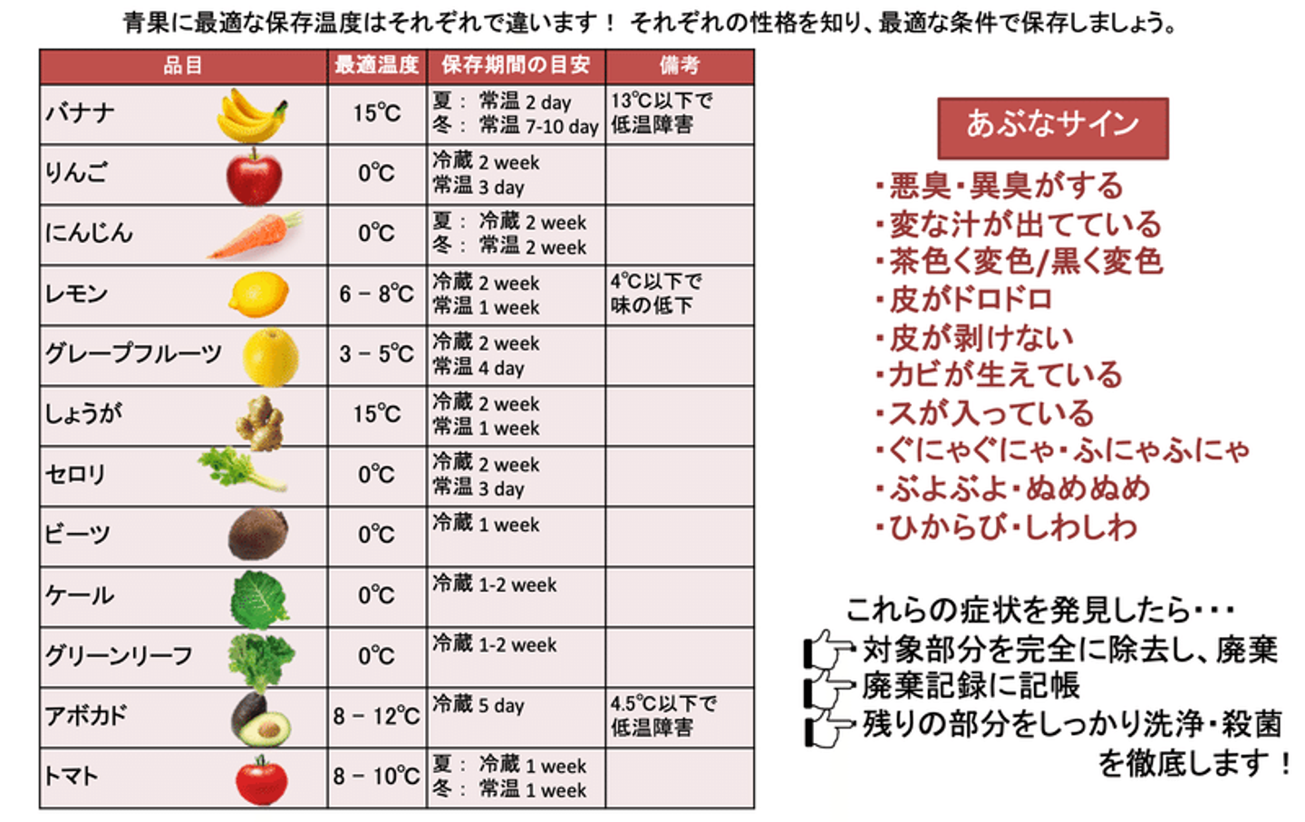 その上、仕入れた青果はそれぞれに適した温度が違うので食材の「保存方法」が複雑です。