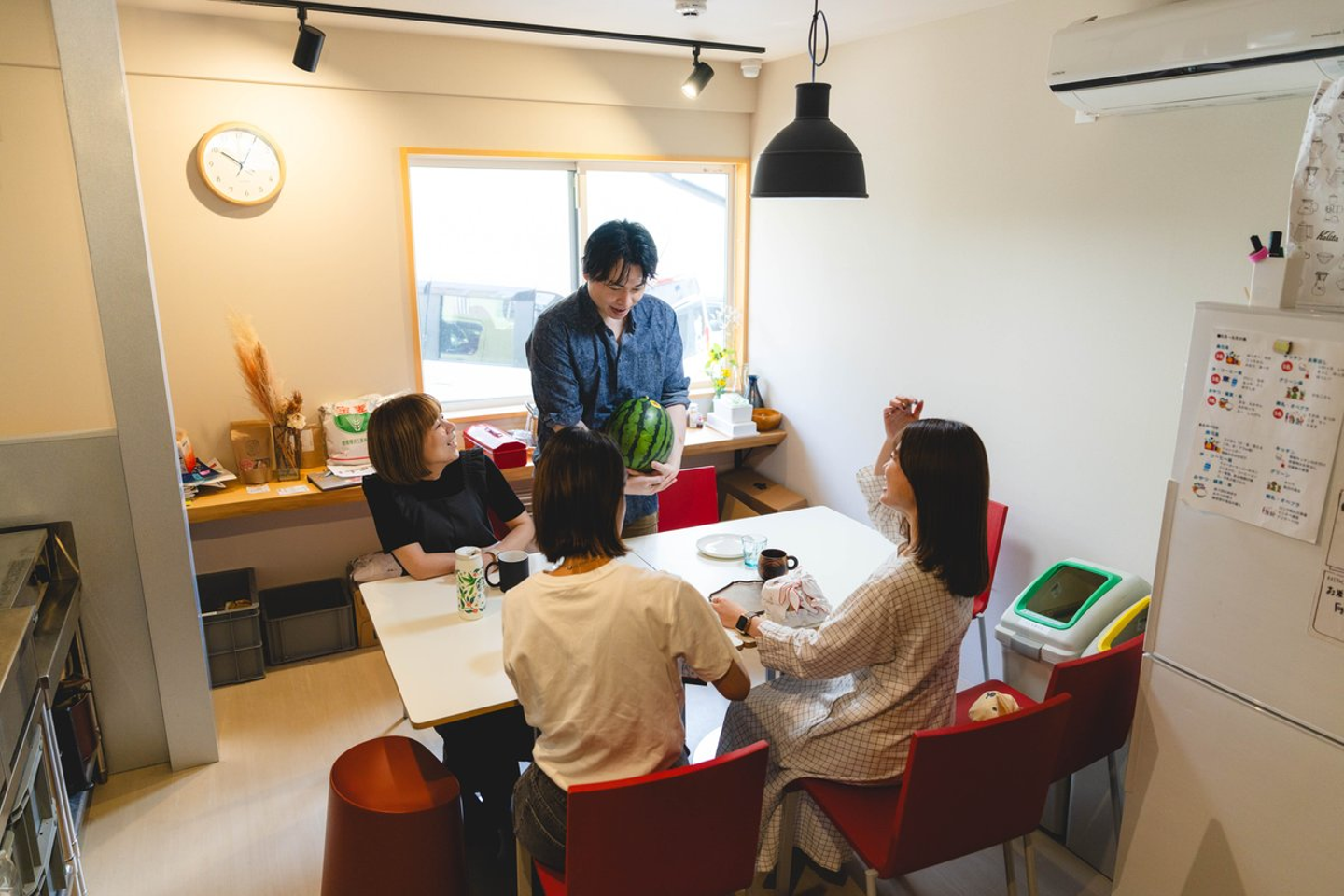 キッチンでお昼ご飯を食べます。普段仕事で関わりが少ないスタッフと交流したり、「今度の休みにどこ行く?」なんて他愛もない話をしたり、気分転換になっています。