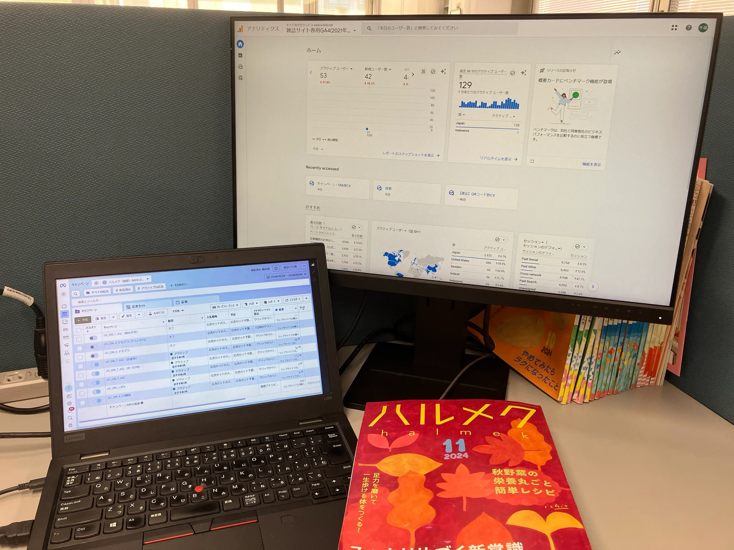 もうひとつ重要なのが「宣伝広告」。せっかく良い雑誌を作っても、売れなくては困ってしまいますよね(笑)。ハルメクのことを知らない方もまだ多くいらっしゃいます。ハルメクをご購読いただけるよう、新聞広告やWEB広告を活用して、魅力的にお伝えする方法を模索します。