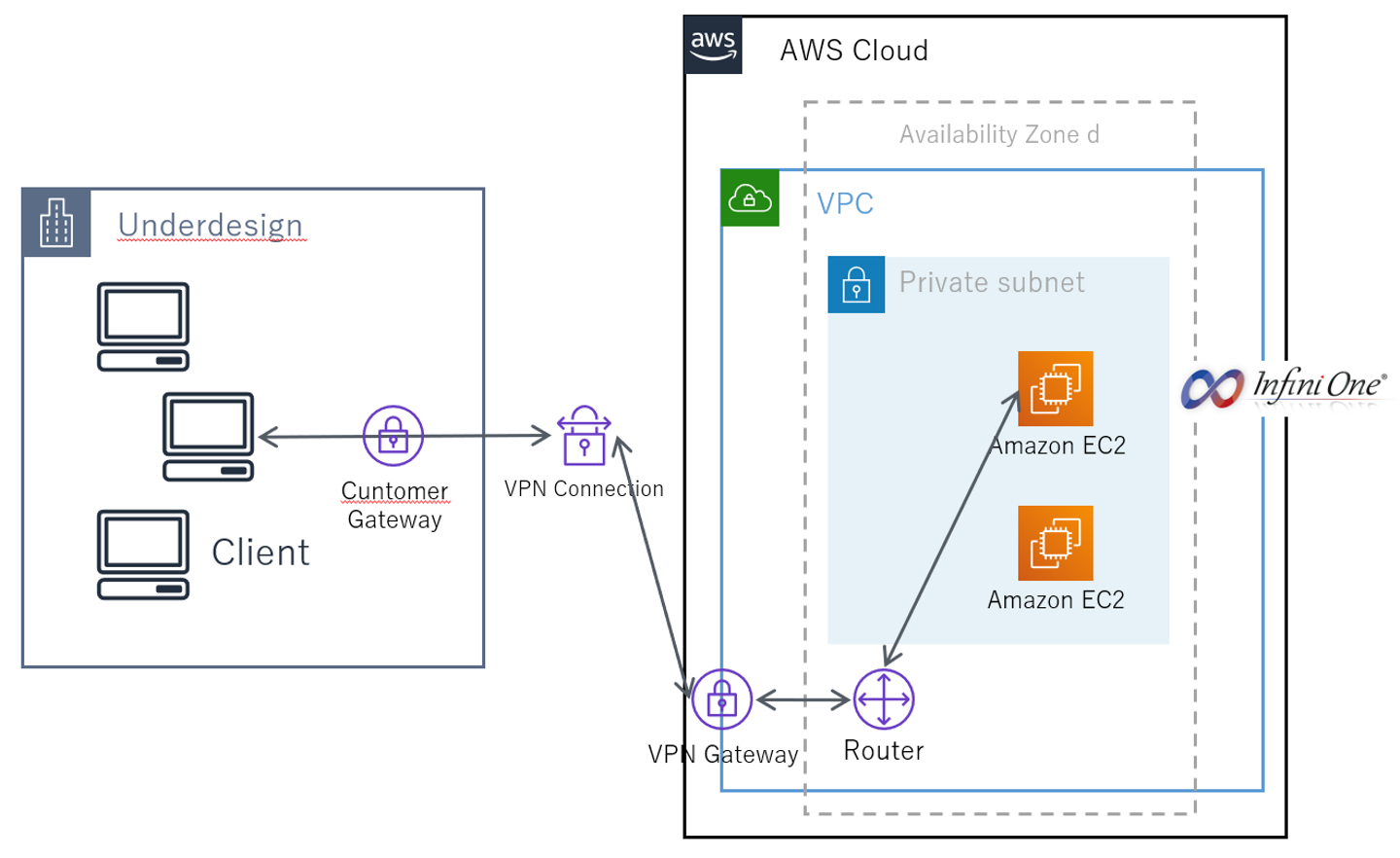 そもそも弊社が利用しているInfini OneはAWS 上にありながらも、フロントサーバーとデータベースサーバーの両サーバーがプライベートサブネットにあり、インターネットから通信ができないようにされています。VPNゲートウェイを経由した、社内LANアクセスのみ許可しているのです。従業員からアクセスがありますが、不特定多数から予想外のアクセスでバーストすることもありません。ある程度、利用頻度と傾向が予測できました。