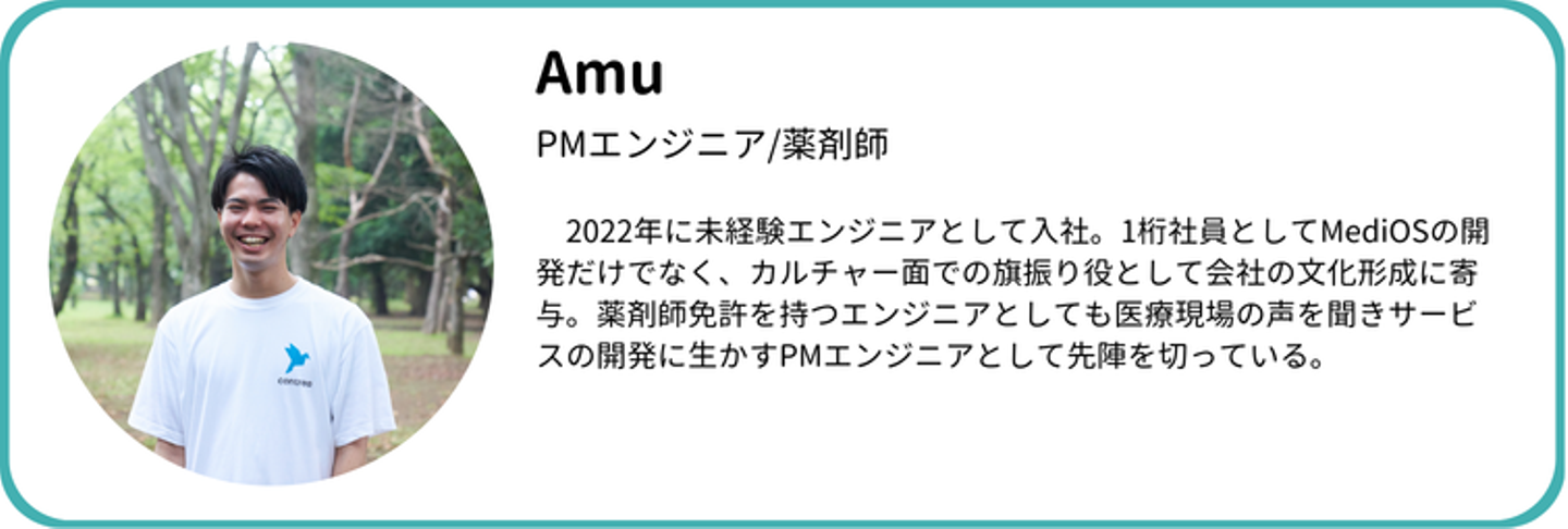 未経験エンジニアから、いかにして医療の意思決定を支えるつくり手となったのか。Amuさんの静かな熱意と、MediOSが描く「記憶に残る医療体験」の未来についてじっくりとお話を伺いました。
