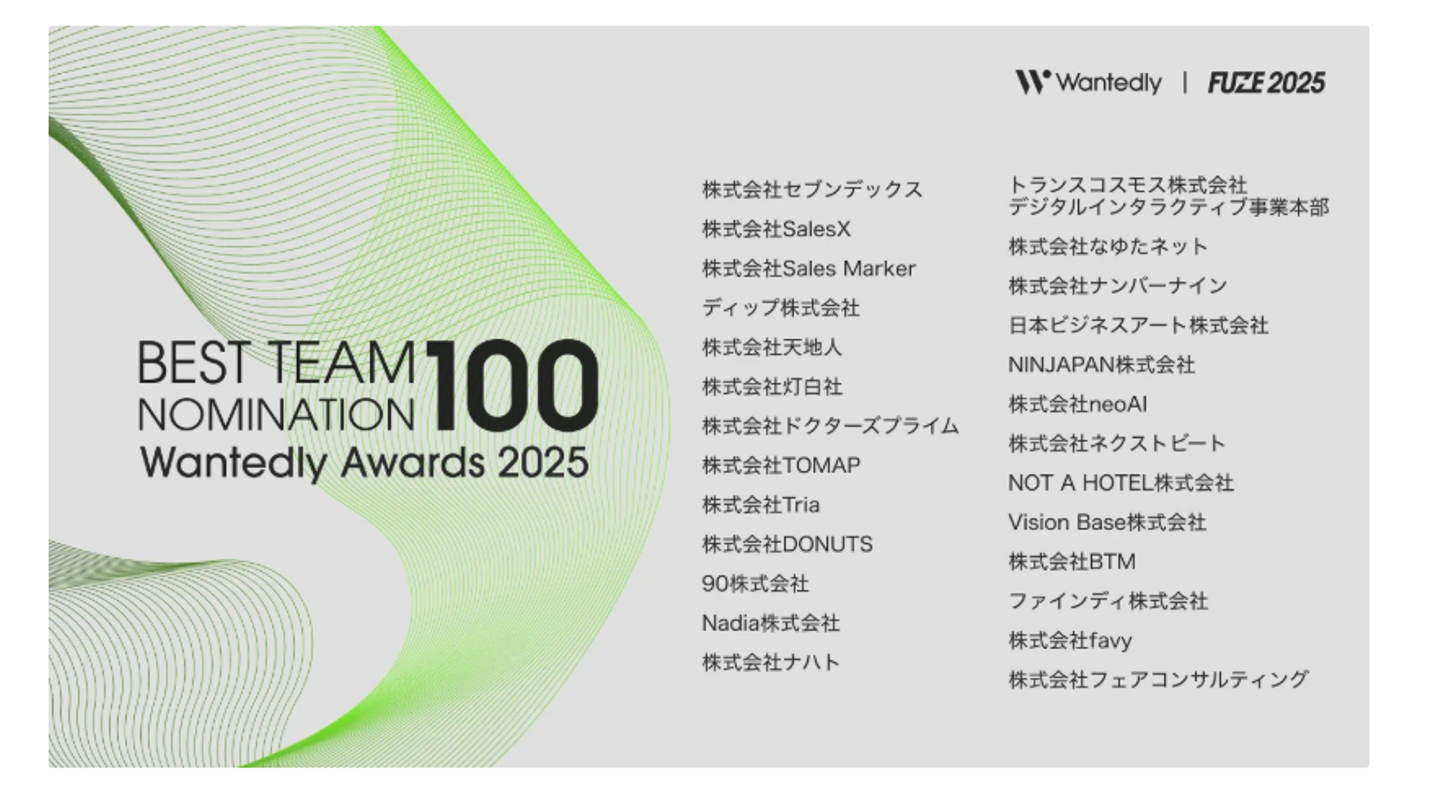 Wantedly Awards 2025 「BEST TEAM NOMINATION 100」選出のお知らせ