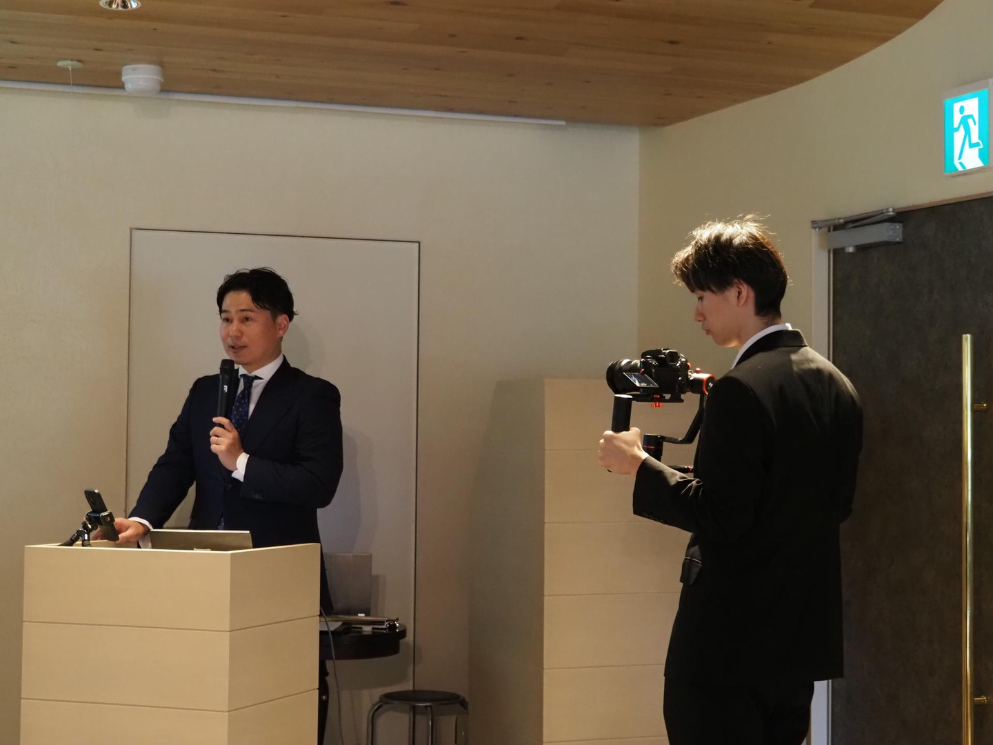 「初めて入社式を行ったこの会場。当時はわずか3名でした。それが今、30名規模になった景色を見て、改めて身が引き締まる思い。今後の発展に向けて、新入社員の2人も共に邁進していきたい。」