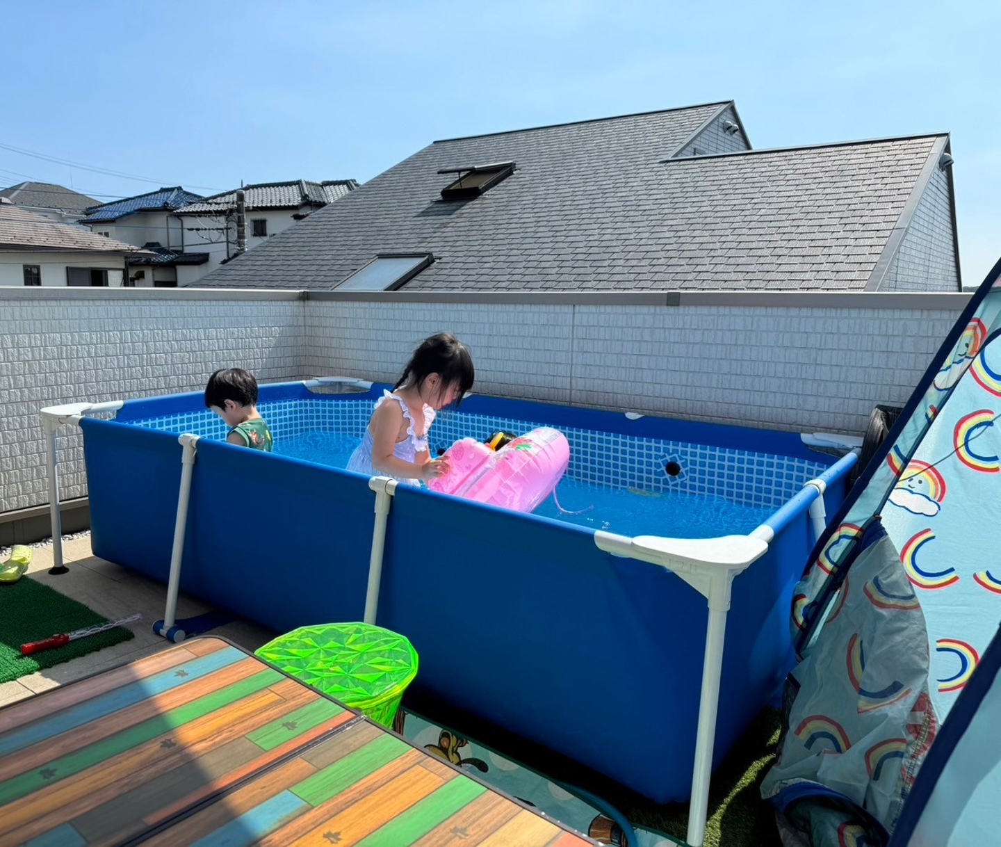 プールも出して子供たちも楽しそうな様子✨