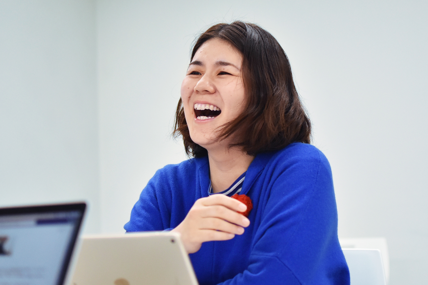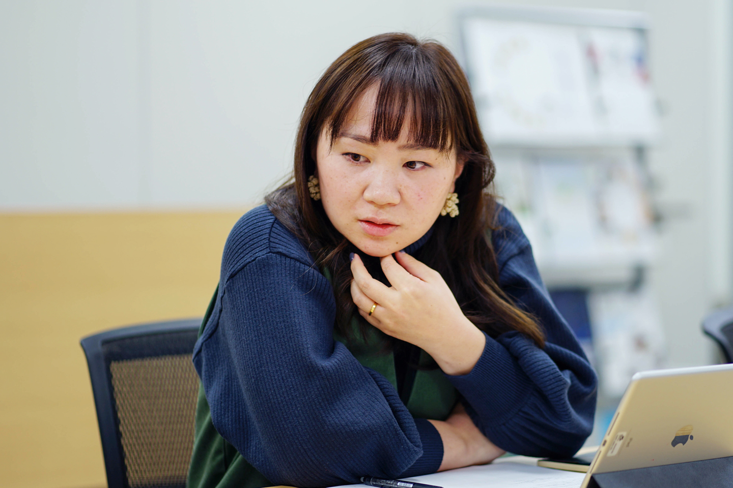 K. Megumi 「ううん、実はそうでもないんだよね。まず初めに、若手からベテランまで、社内のデザイナー全員に“デザインをする際に大切にしていること”をそれぞれ書き出してもらって集めたの。それを、ここにいる東京・大阪両本部のデザイン部のサブリーダー6人が中心になって、集まった言葉をとりまとめた結果出来上がった…って感じかな。」