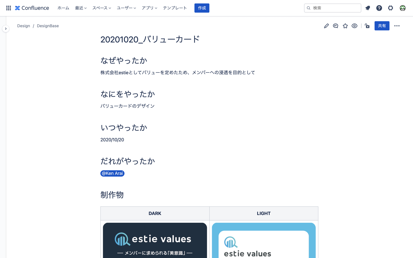 過去のクリエイティブが一覧で見られるのは良いのですが、デザインコンセプトは言語化して残されていませんし、そもそもestieは何で青色ベースなの?という質問に答えられるものでもありませんでした。