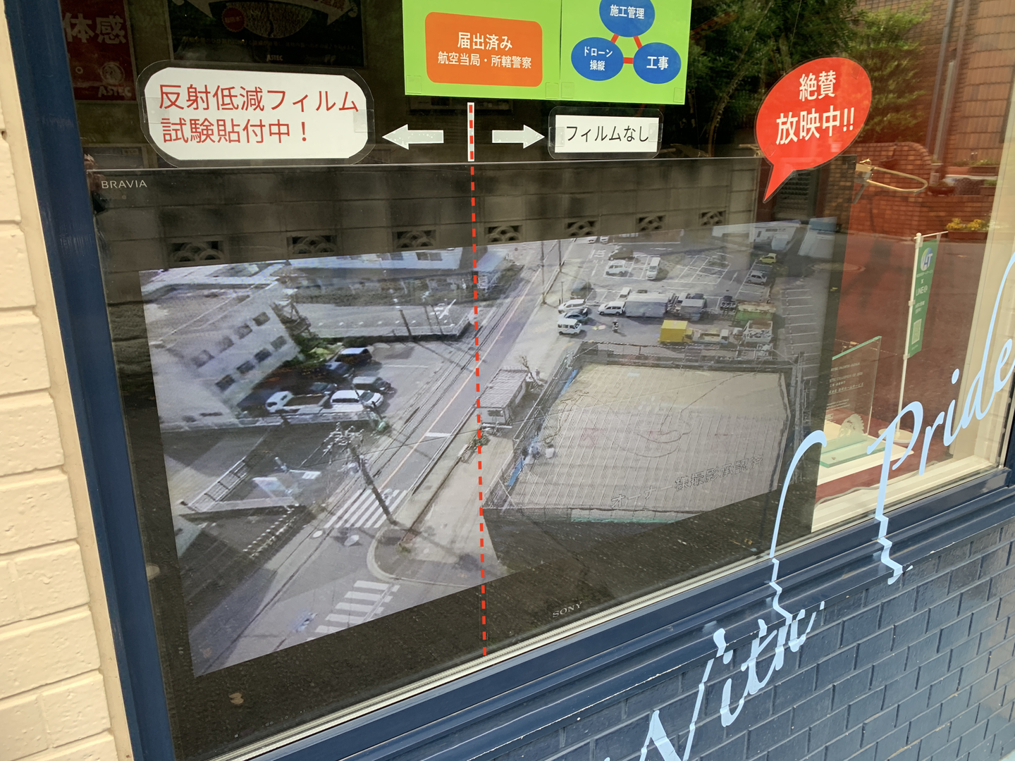 対策方法として、映り込みを軽減出来る低反射フィルムを施工してみた。